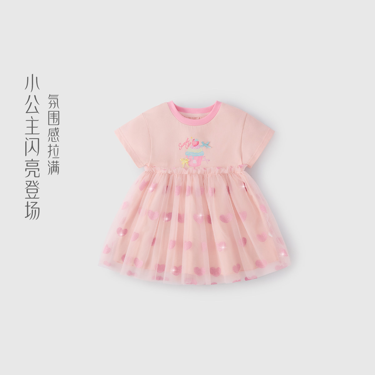 女童连衣裙拼接网纱裙2026新款夏款短袖印花裙子薄款日常公主裙