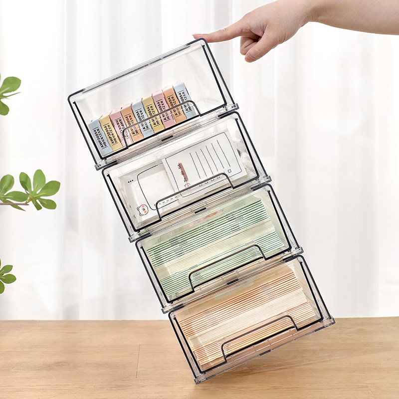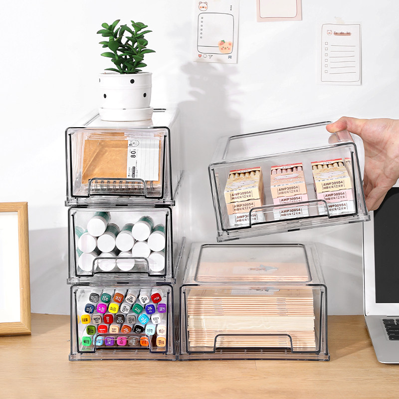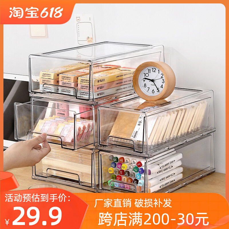 透明桌面收纳盒抽屉式大容量整理盒化妆品面膜杂物学生书桌收纳箱