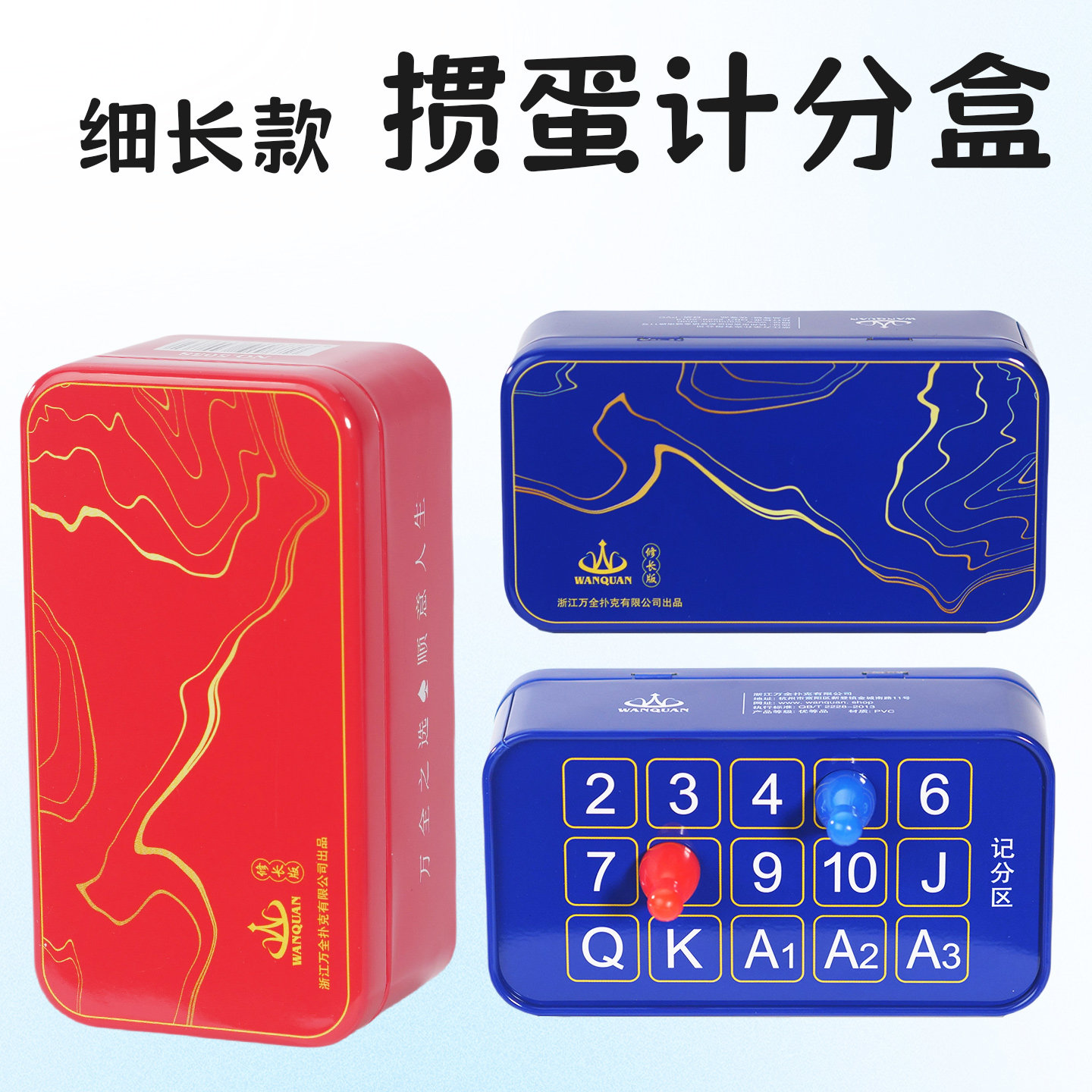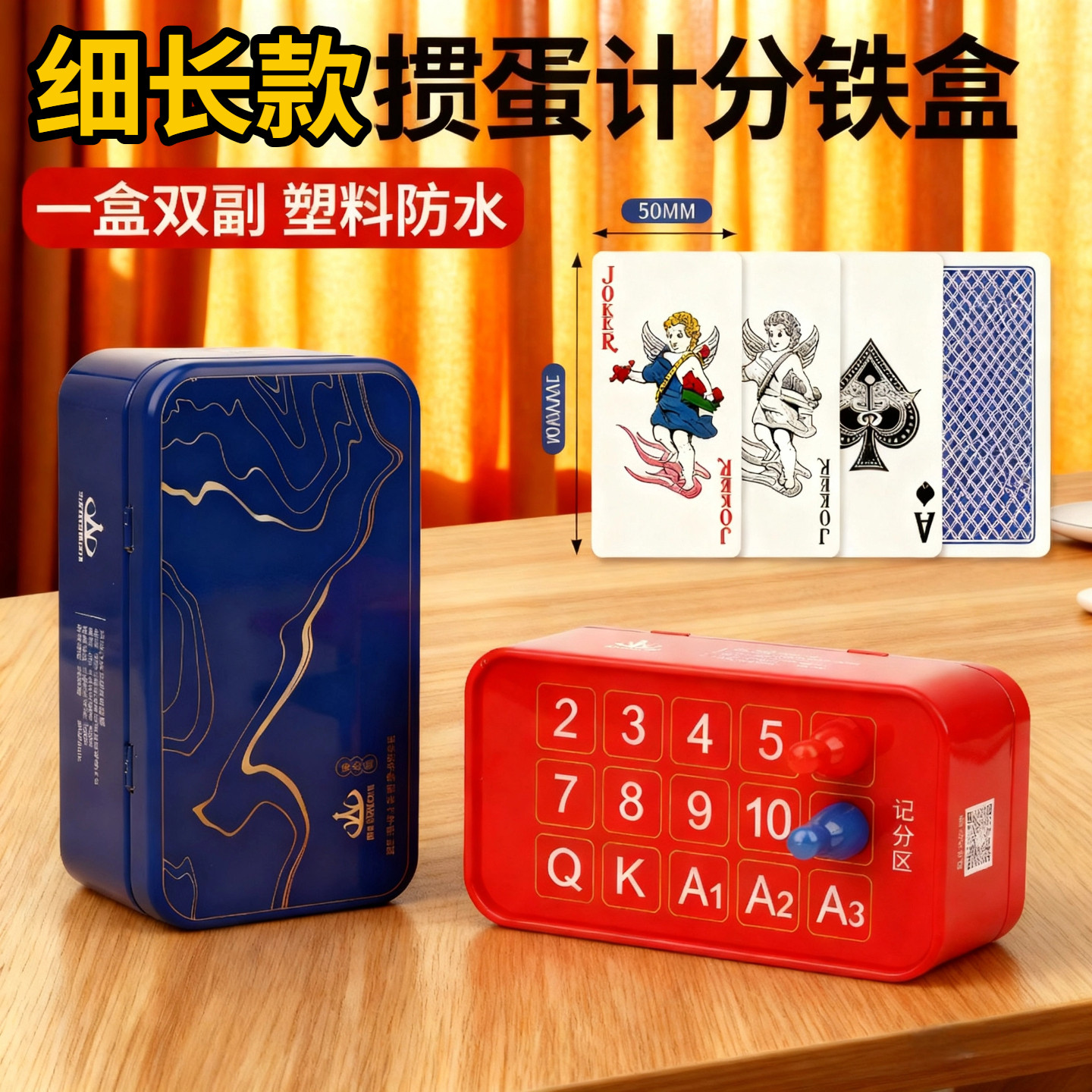 掼蛋专用扑克牌铁盒塑料PVC细长窄版防水防折惯蛋计分盒器便携式