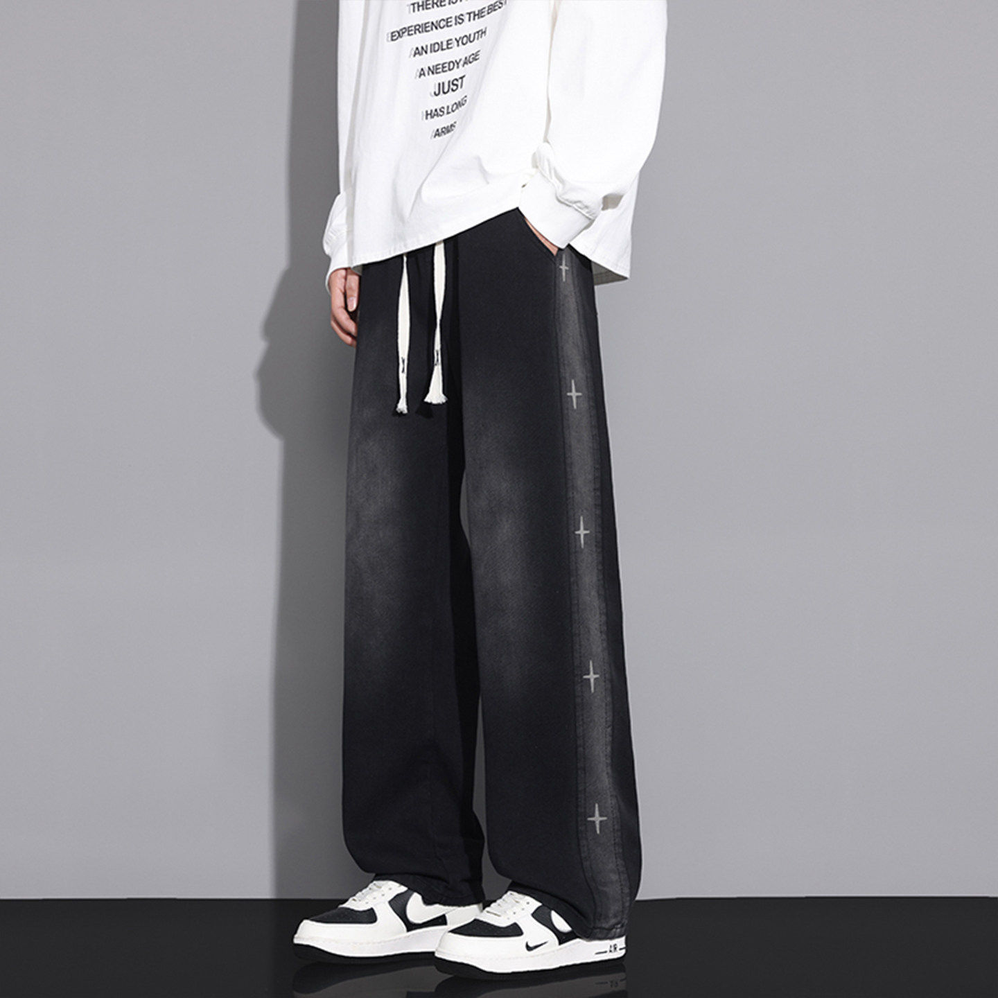 春秋季裤子男生初中高中学生帅气阔腿直筒长裤青少年休闲牛仔裤潮