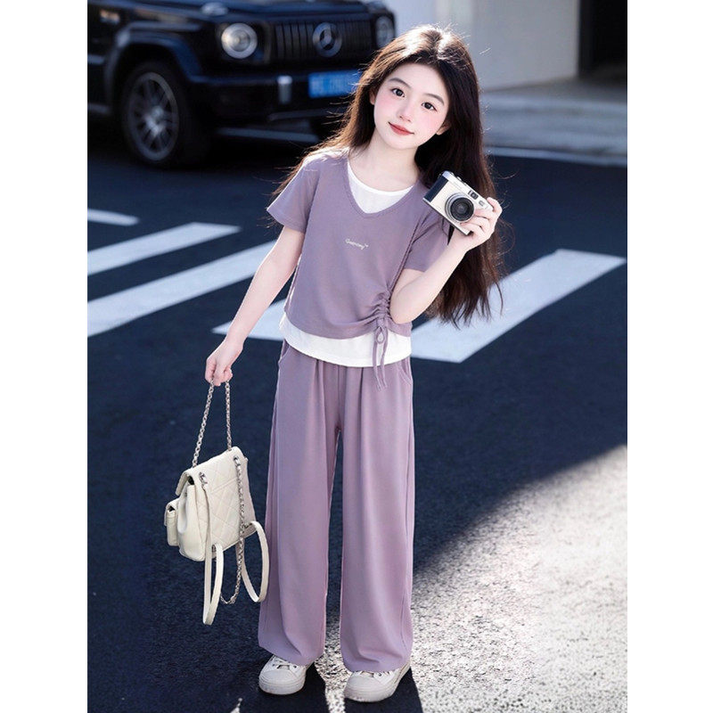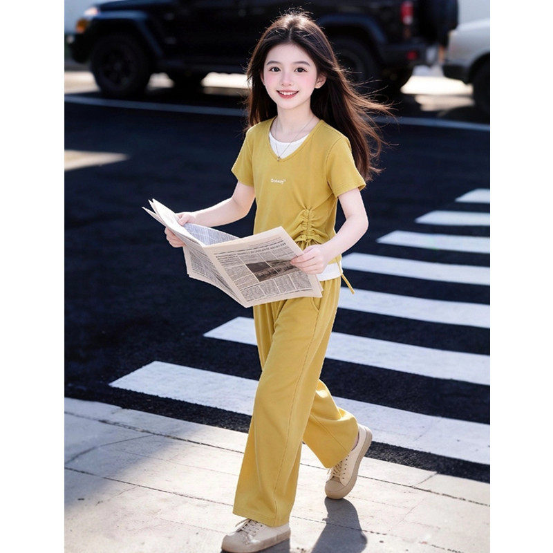 女童套装夏季2026新款儿童洋气短袖T恤女大童夏装休闲运动两件套