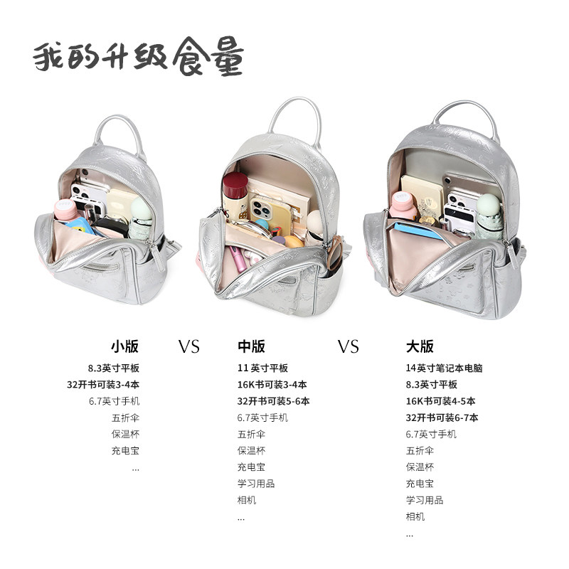 爱路喜银色双肩包女旅游轻便高颜值大学生通勤背包大容量小众书包