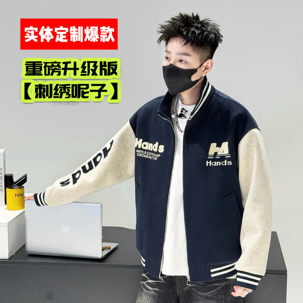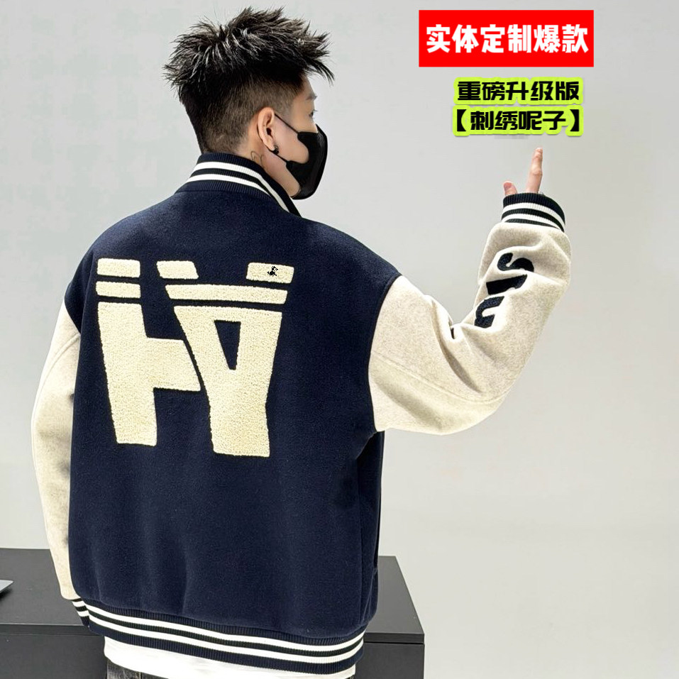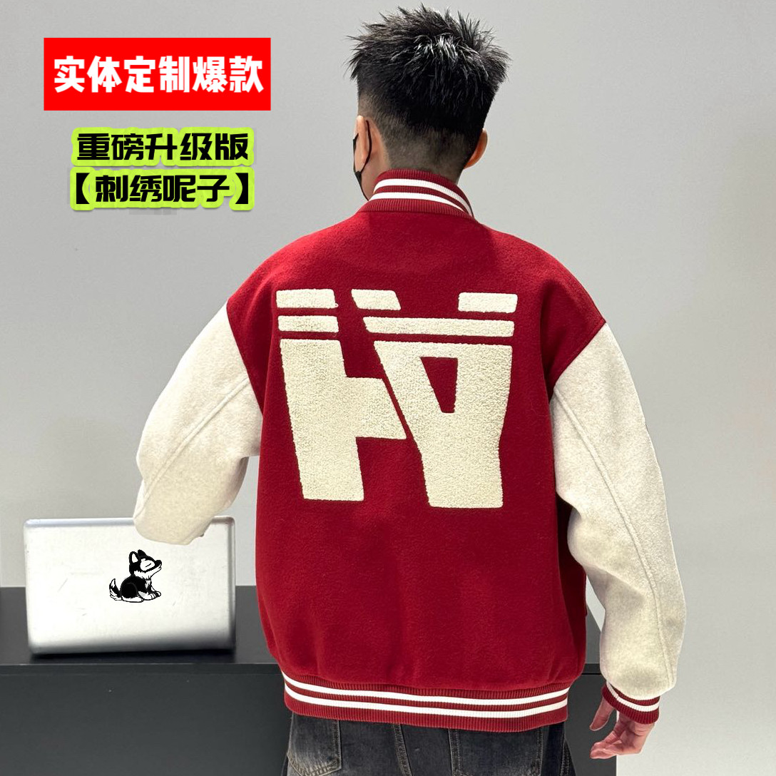 【实体爆款刺绣呢子】深圳狼族2026新年红色棒球服潮流男女款外套