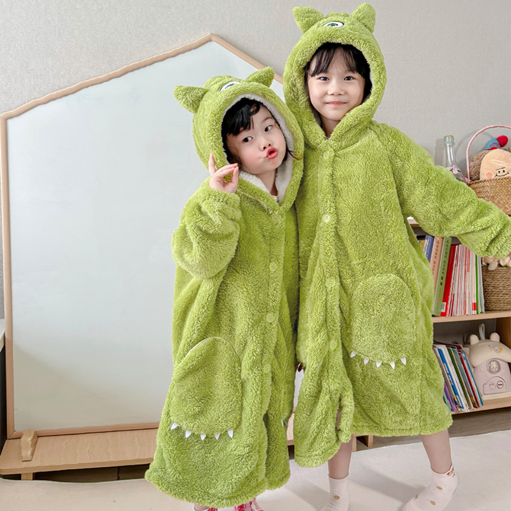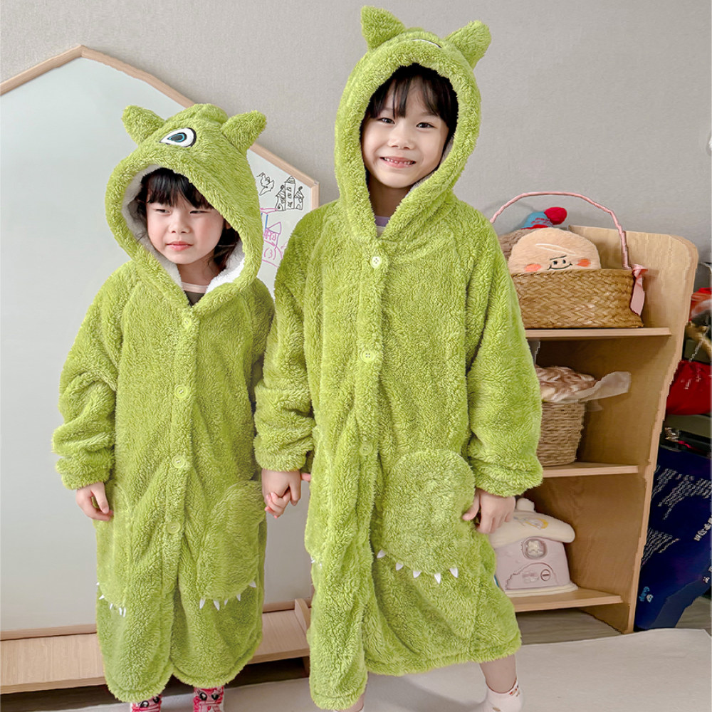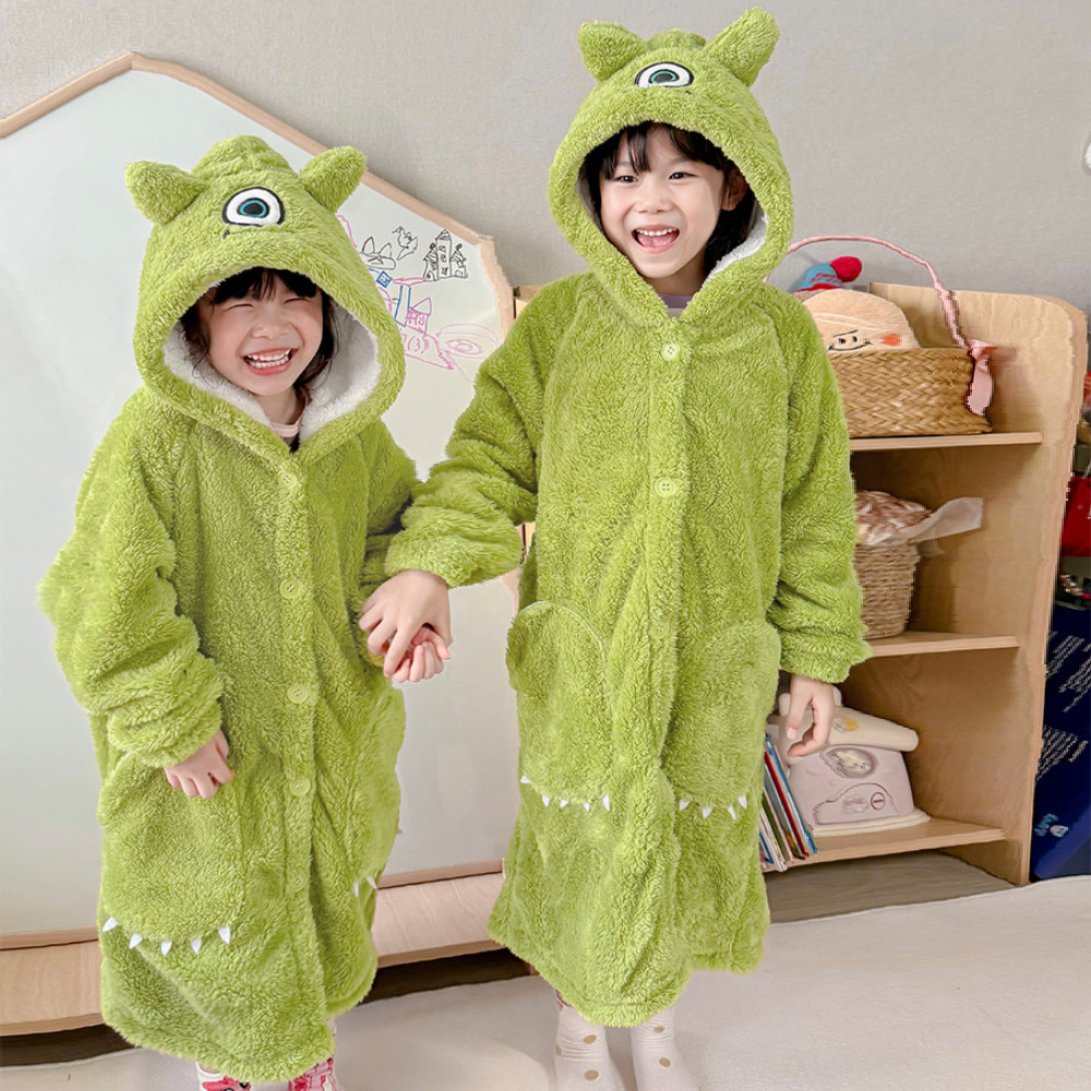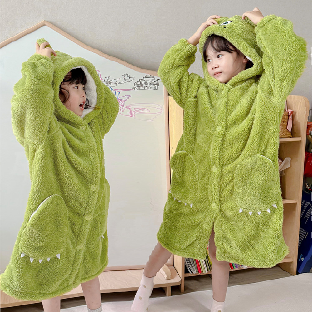 2026年新款春秋季可外穿珊瑚绒睡袍女童男童加绒加厚家居服浴袍
