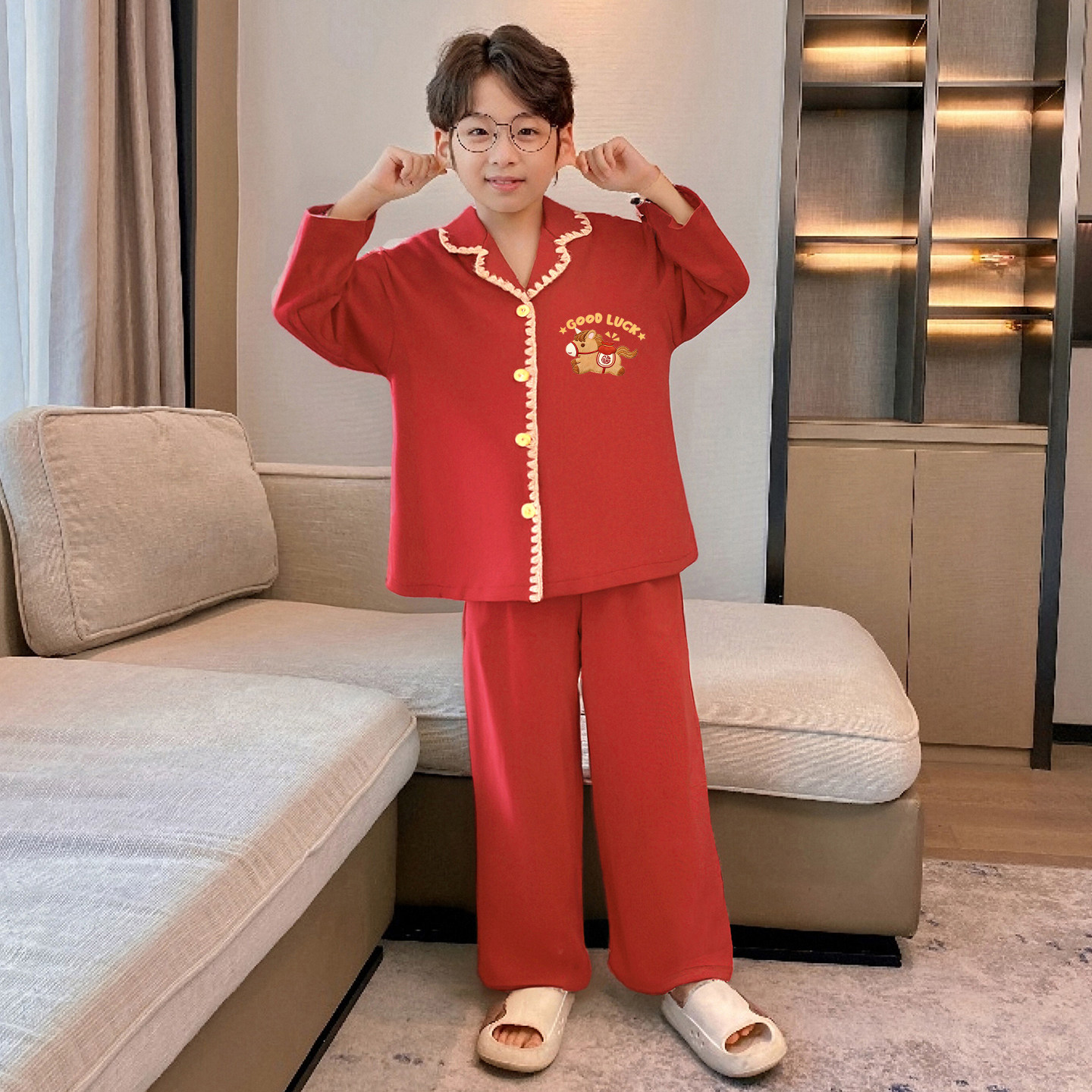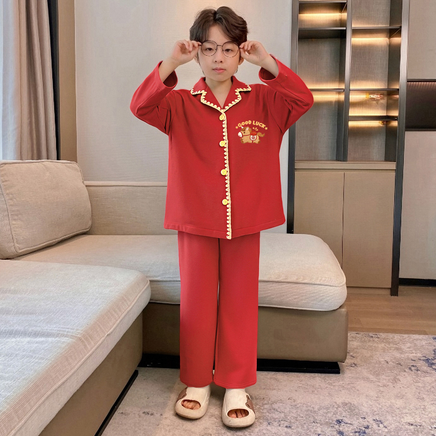 男童红色睡衣马年纯棉长袖春秋季中大童男孩2026新款本命年家居服