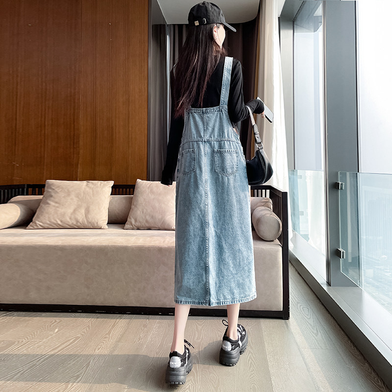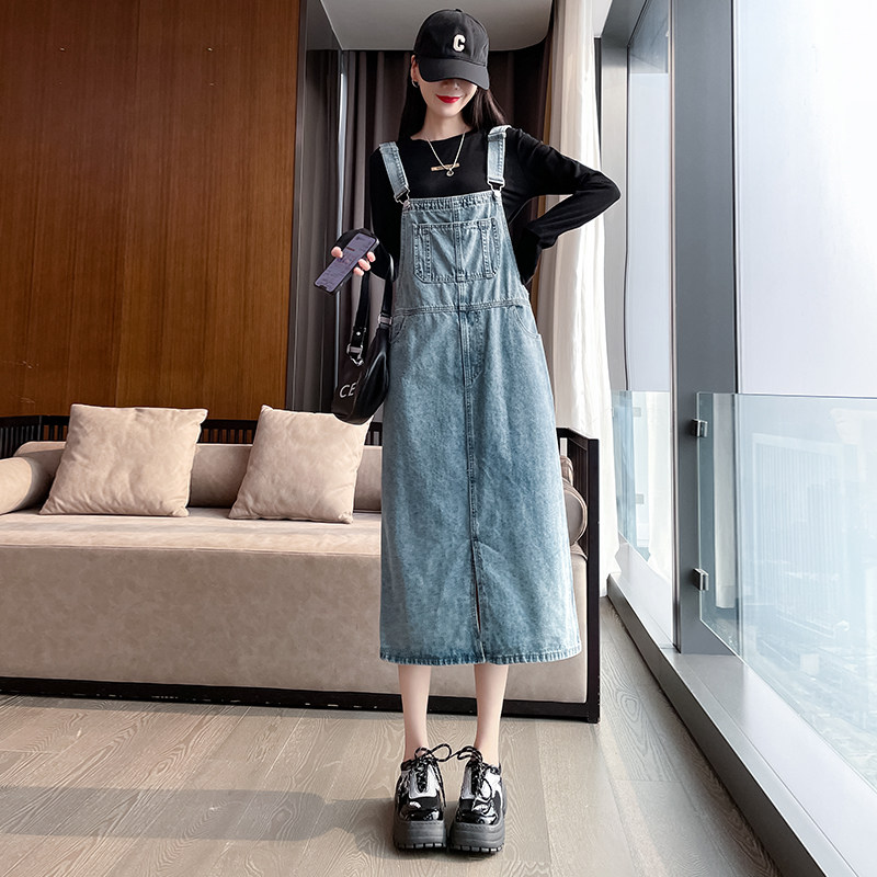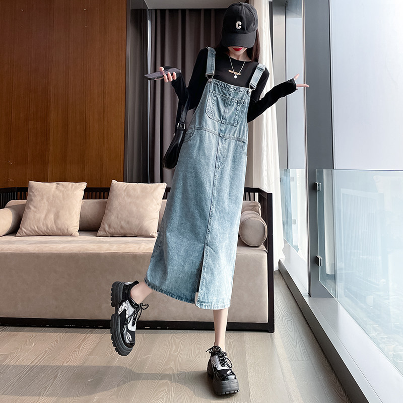 牛仔背带裙女春秋宽松小个子2025新款开叉可爱减龄百搭甜美连衣裙