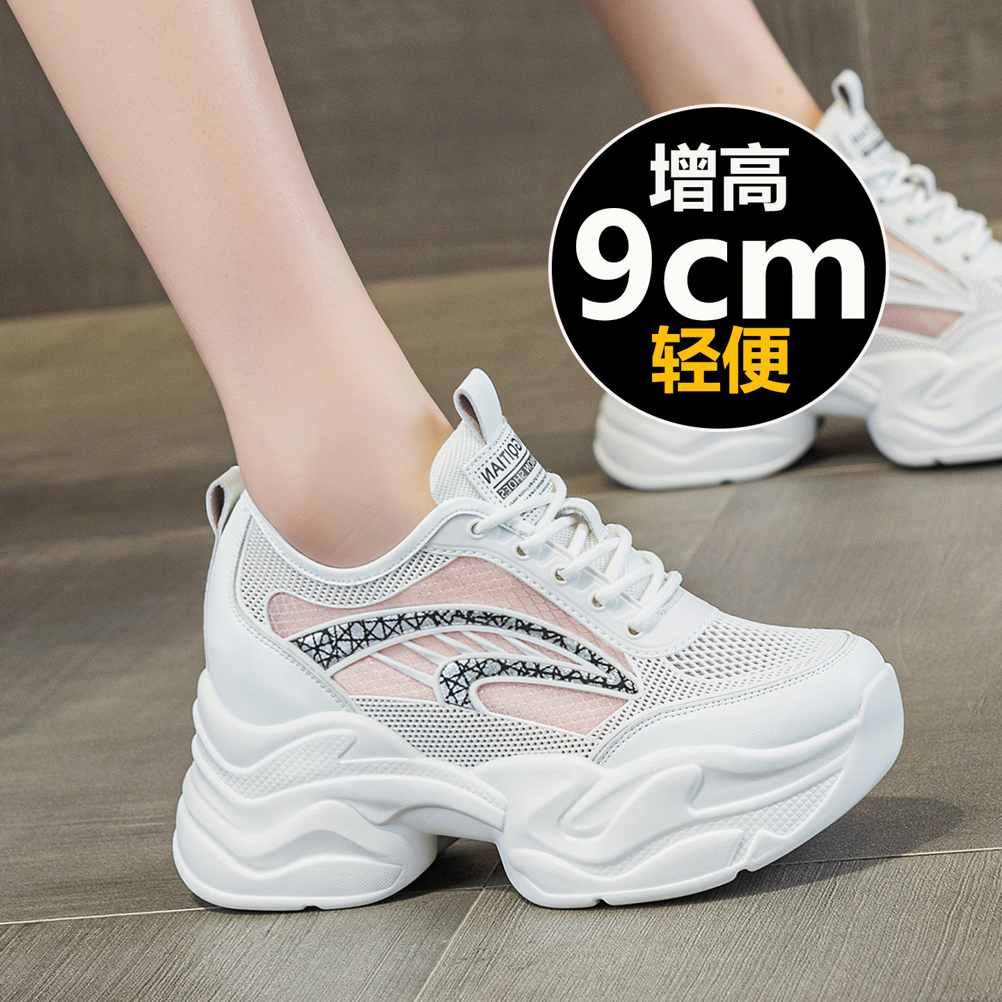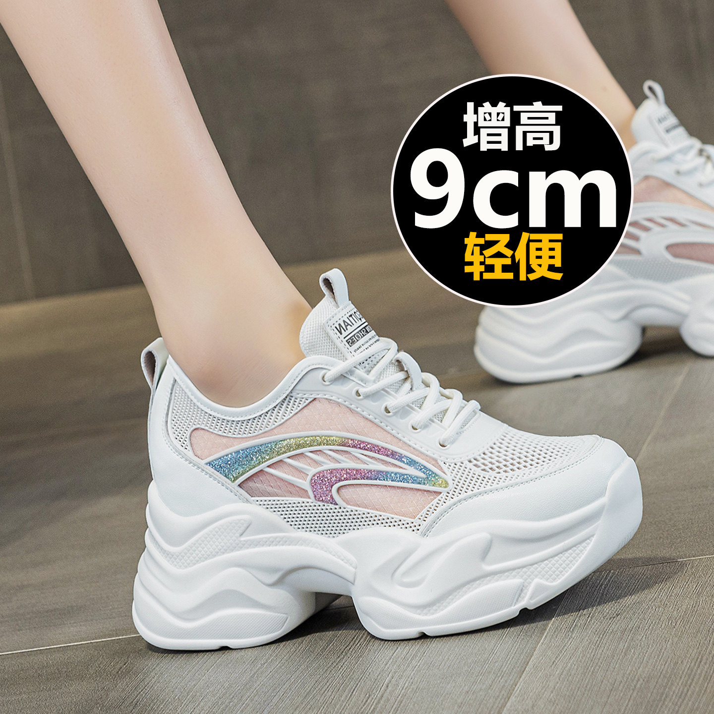 夏季薄款老爹鞋女款内增高9cm网面透气轻便小个子运动鞋2026新款