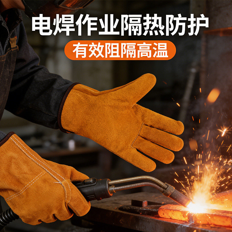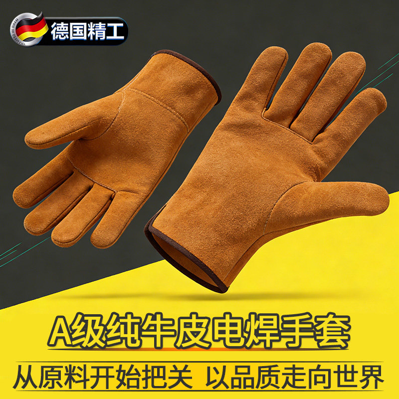 电焊手套牛皮耐高温进口防烫柔软无缝劳保耐磨加厚氩弧焊焊工专用
