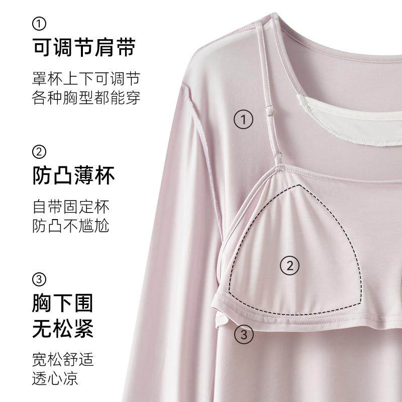 冰丝睡衣带胸垫长袖家居服女夏季外穿上衣2026新款可调节春秋套装