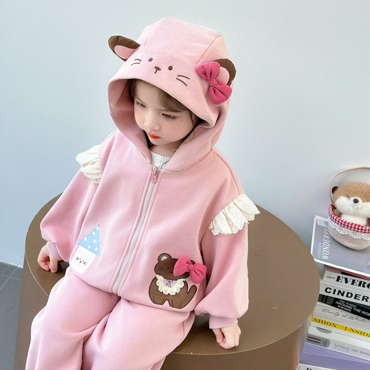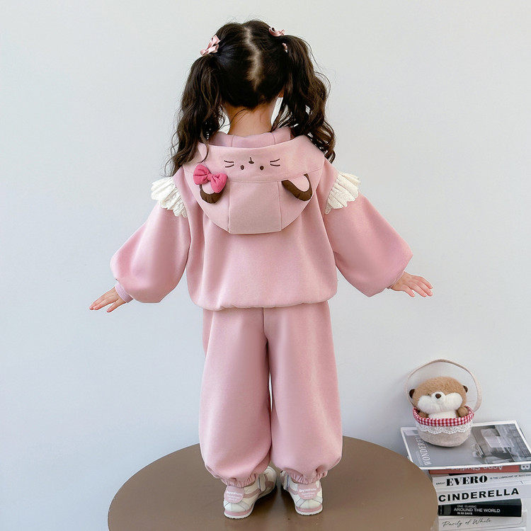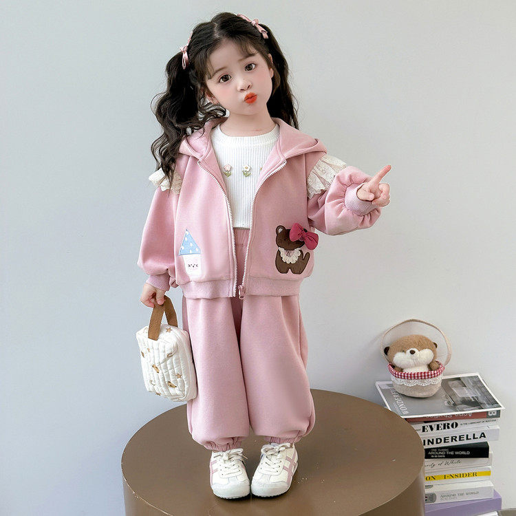 女童粉色外套裤子套装春装2026新款女宝宝卫衣卫裤休闲长裤两件套