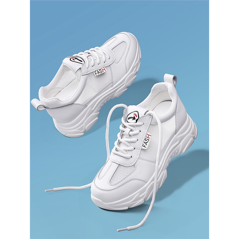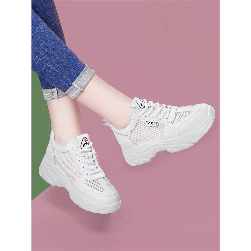 网面透气老爹鞋女2024新款夏季薄款网鞋白色休闲运动厚底小白鞋子