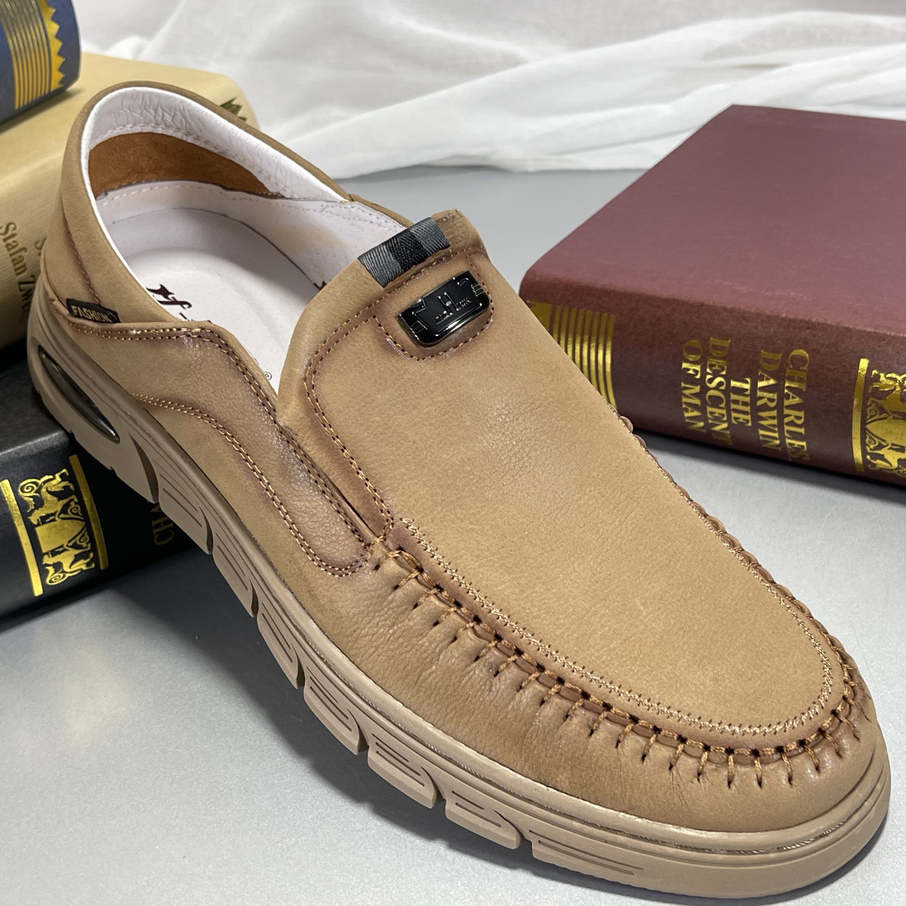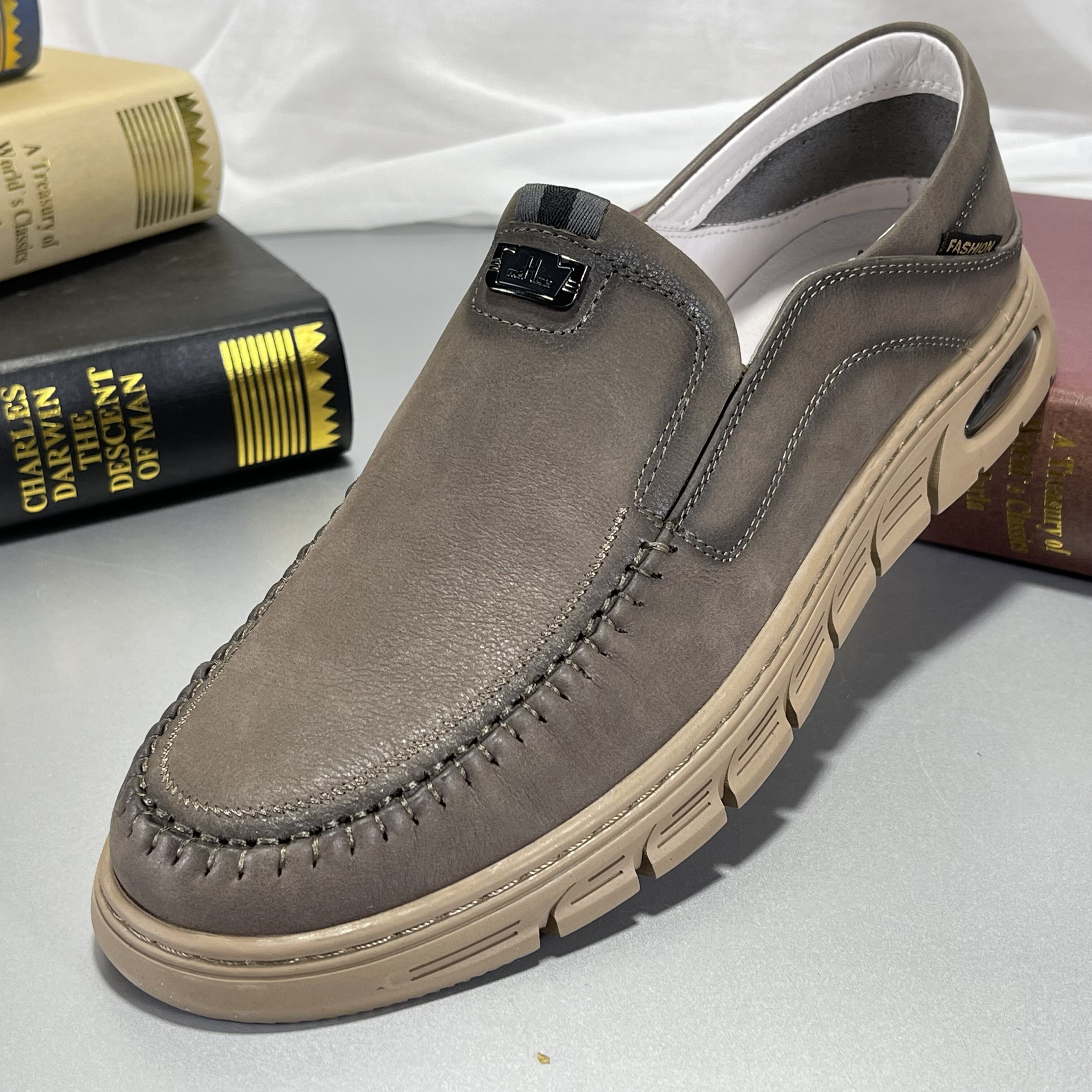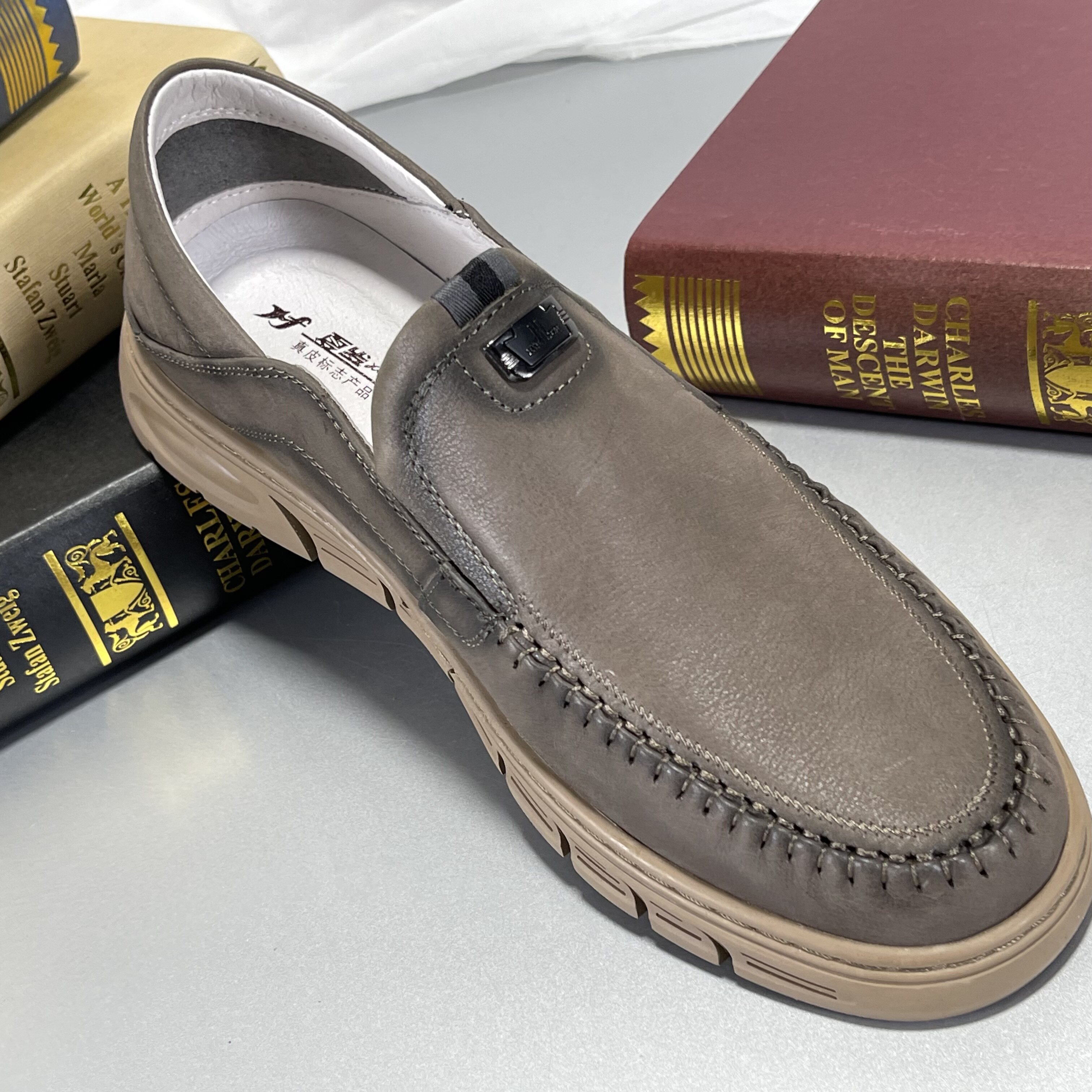 高端定制!头层牛皮男鞋2025新款透气休闲皮鞋男真皮一脚蹬乐福鞋