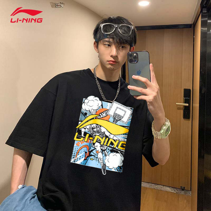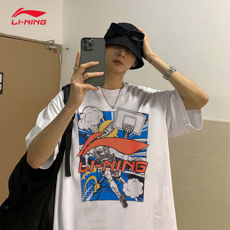 李宁短袖男款2026夏季新款白色棉半袖青少年印花潮流宽松运动t恤