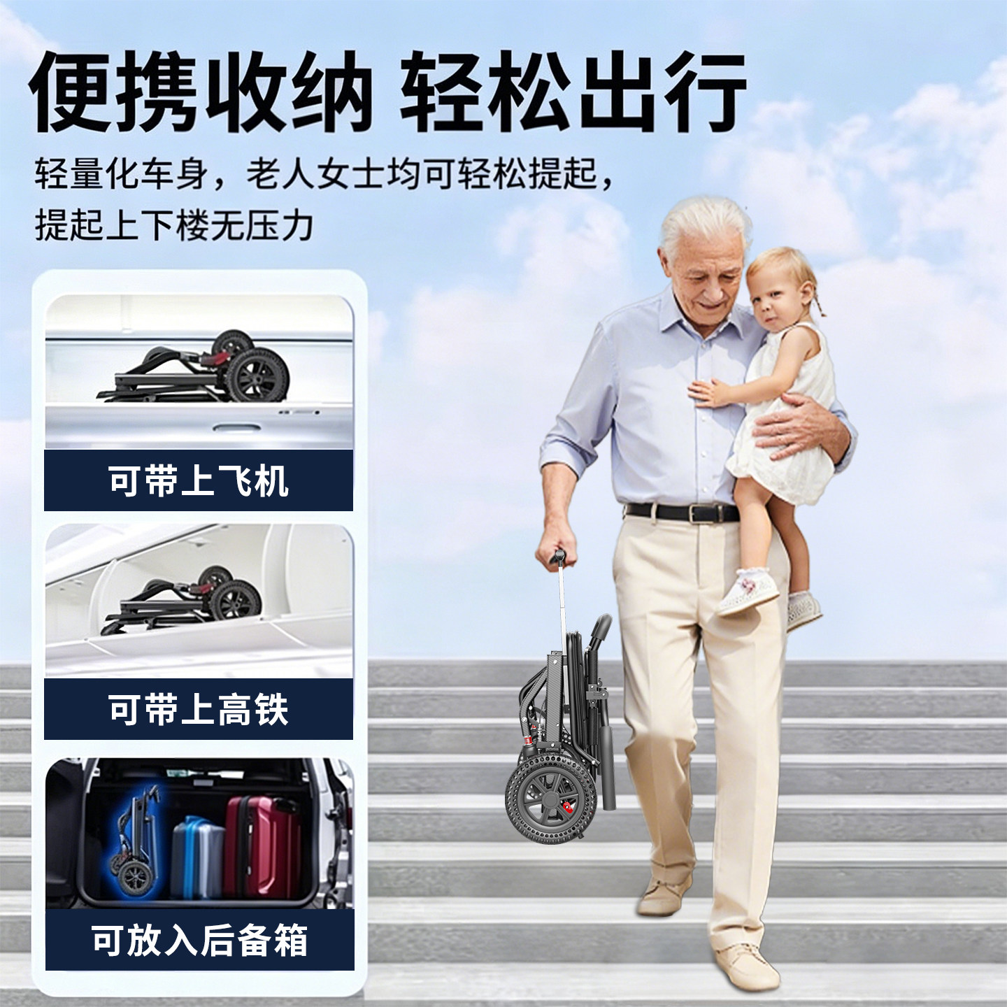恒倍舒超轻便可折叠国家补贴老人专用小型便携式旅游可上飞机轮椅