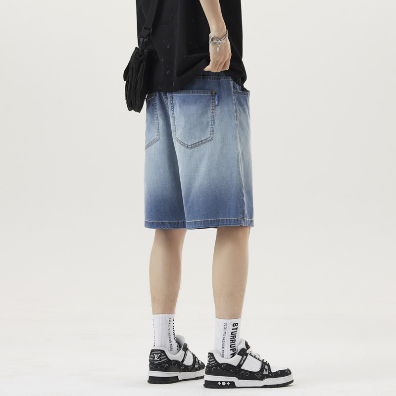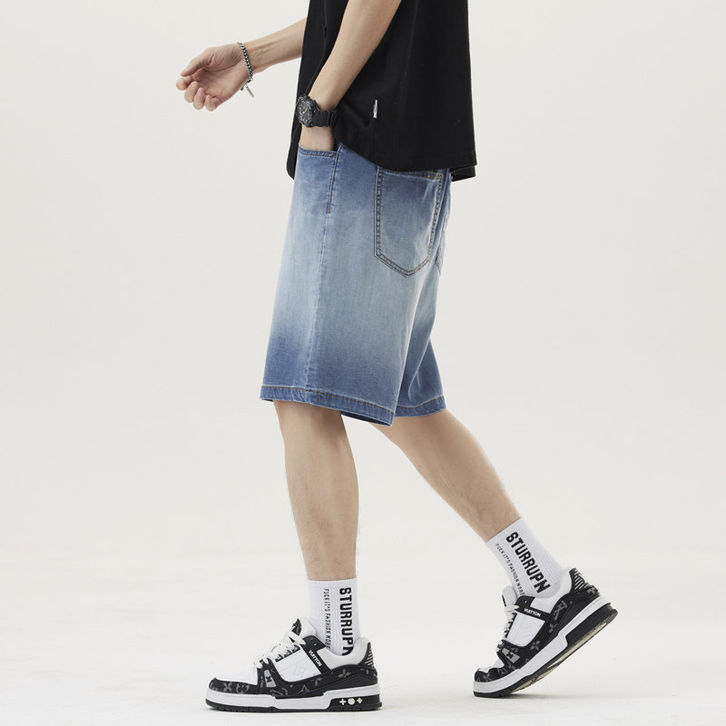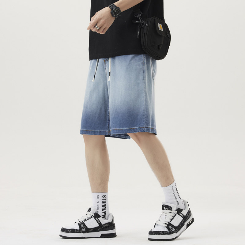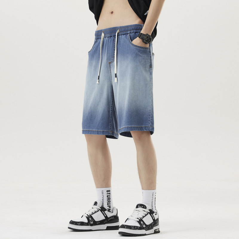 冰丝牛仔短裤男夏季薄款2026新款宽松直筒长裤子天丝垂感阔腿休闲