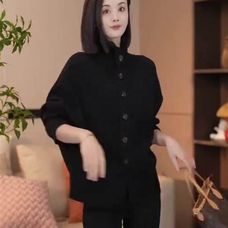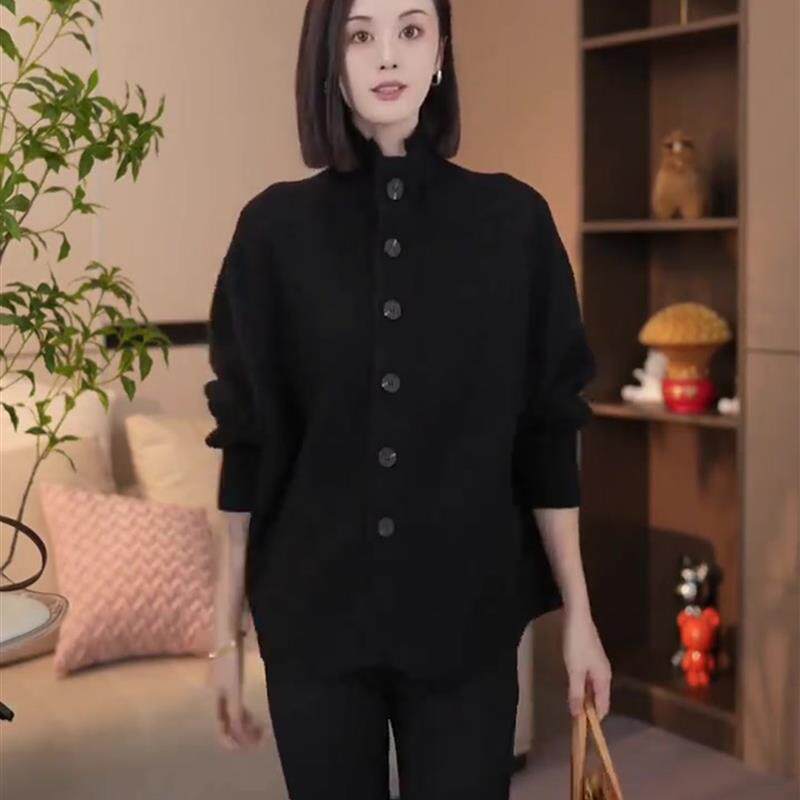 高领加厚毛衣外套女秋冬季2025新款慵懒风高级感穿搭宽松针织开衫