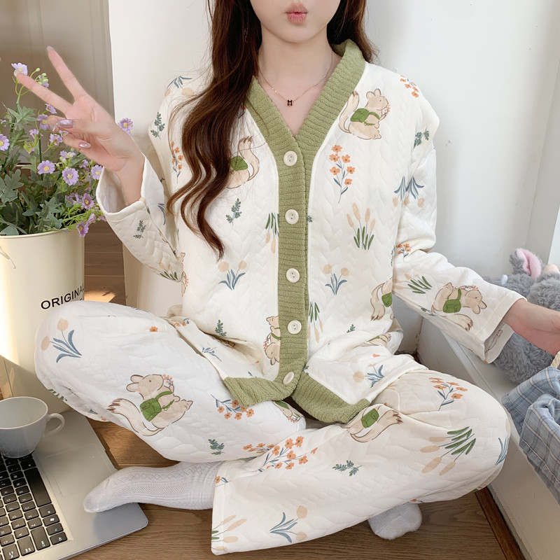 带胸垫空气棉月子服秋冬季加厚春秋纯棉产后哺乳喂奶产妇孕妇睡衣