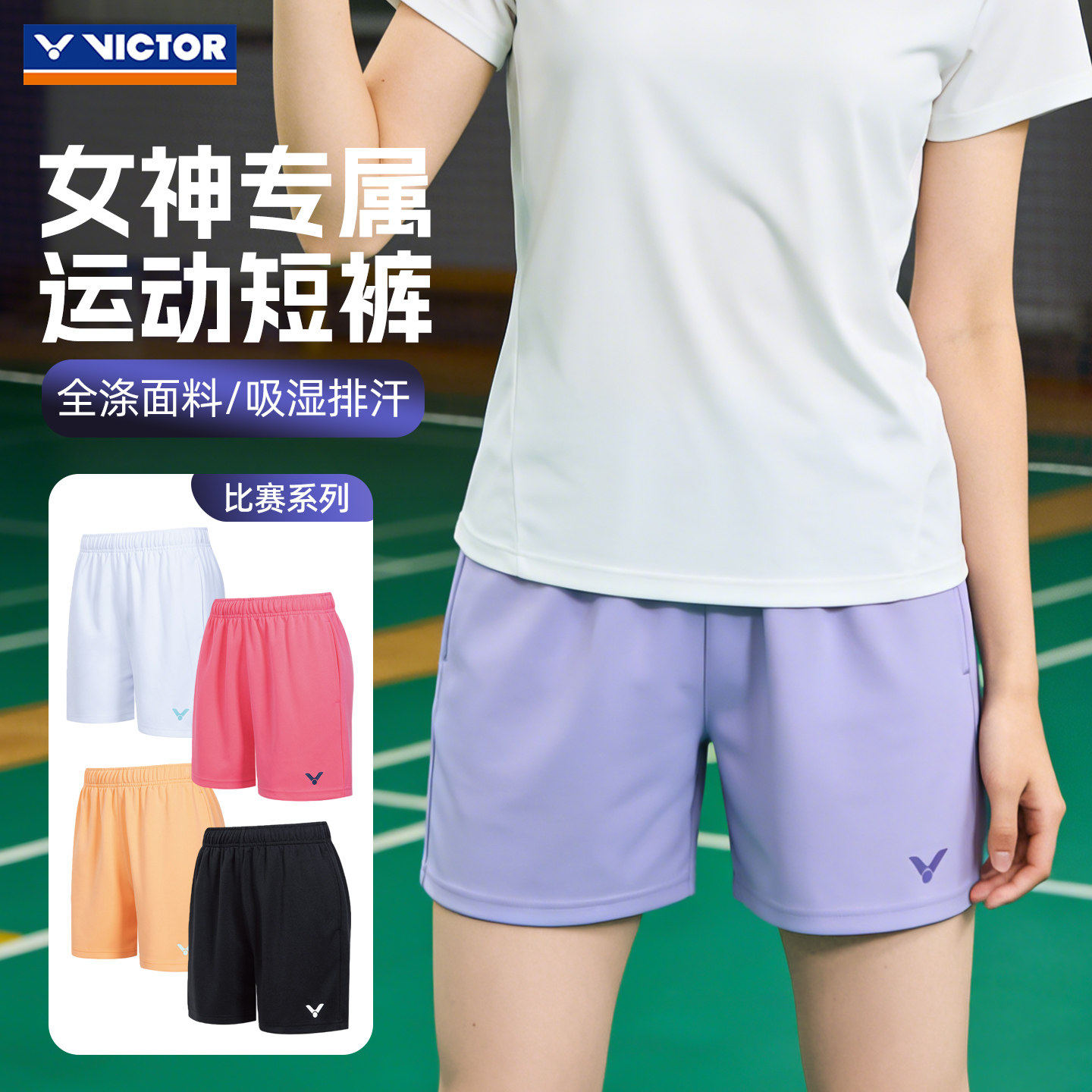 2026victor胜利羽毛球服女款速干运动短裤跑步健身修身裤子R61203