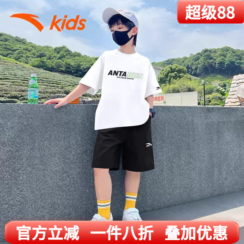 安踏儿童套装男童装2026夏季新款短袖棉T恤短裤大童速干运动衣服
