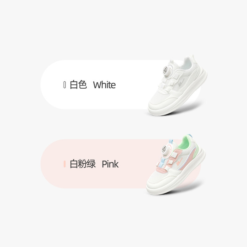 回力男童运动鞋2026年春夏新款女童旋钮白鞋儿童鞋子休闲透气网鞋