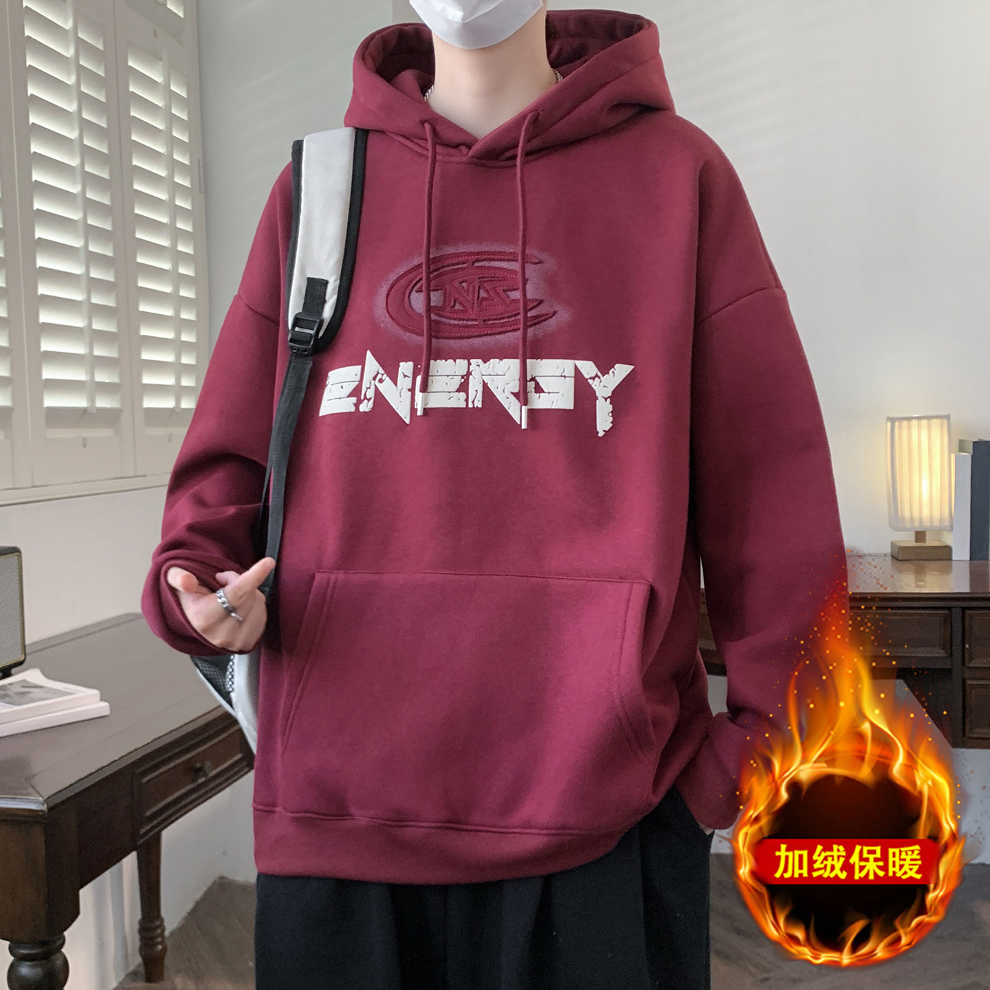 秋冬款加绒加厚卫衣12岁男孩初高中学生13潮流帅气15大童连帽外套