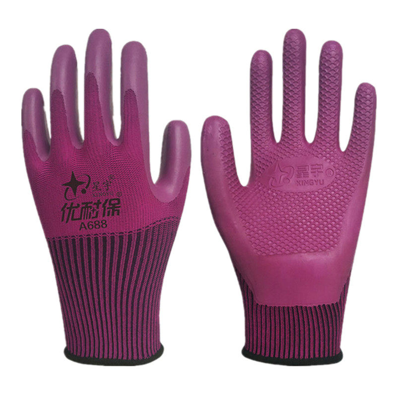 星宇手套劳保优耐保A688正品女小号耐磨防滑工地干活胶皮浸胶橡胶