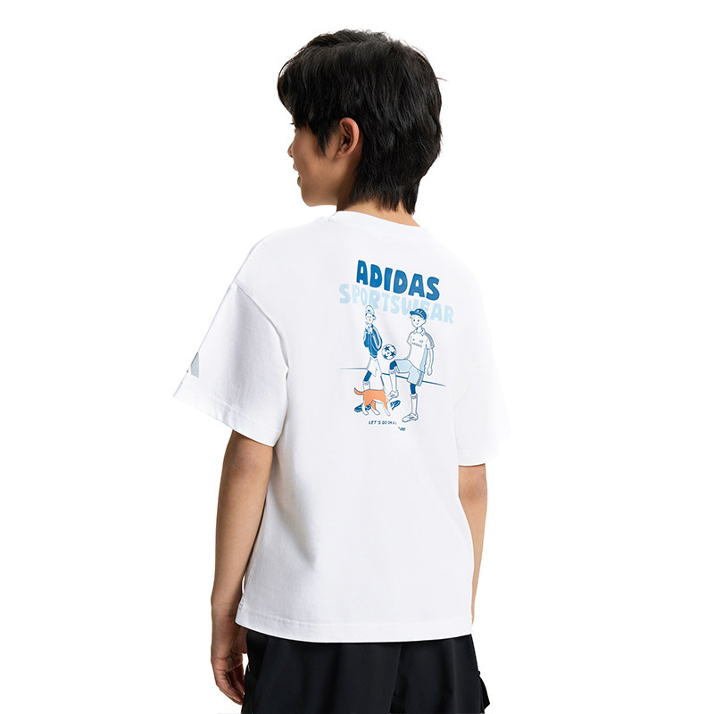 阿迪达斯童装26夏季男童运动休闲短袖大童儿童透气舒适T恤KG5992