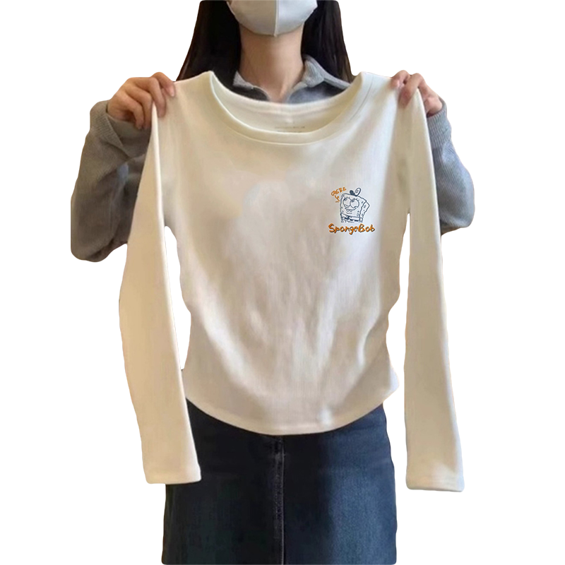 早春纯棉长袖T恤女装2026新款秋冬季加绒短款洋气内搭打底衫上衣