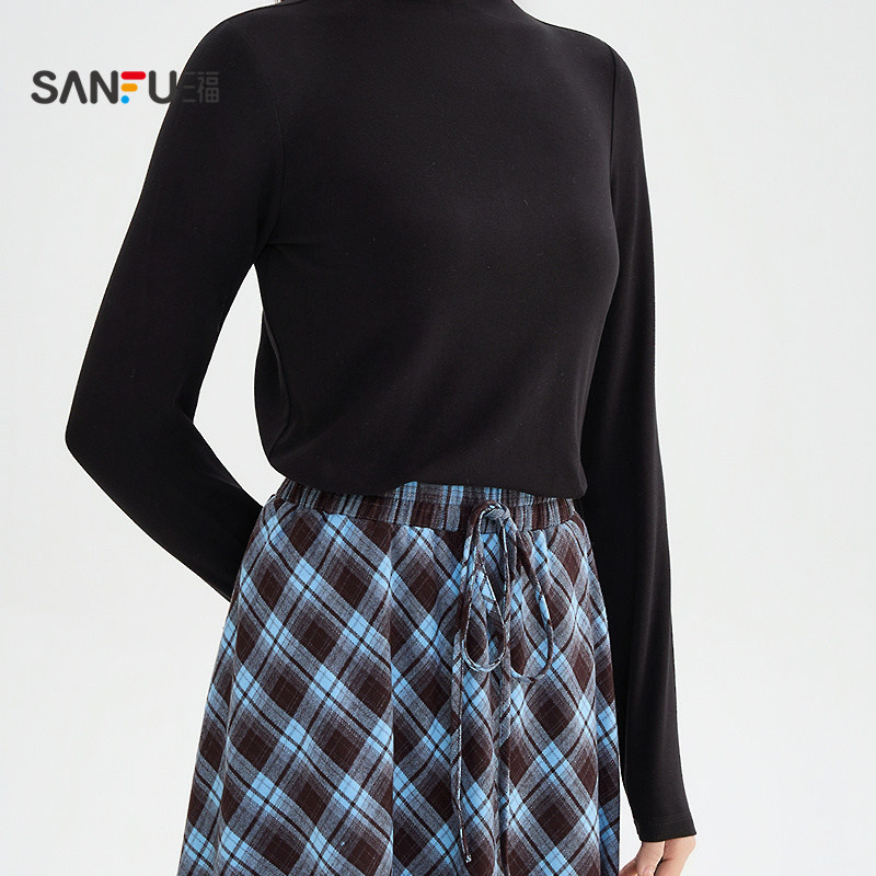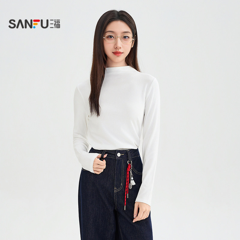 三福打底衫2026新款早春保暖立领内搭上衣显瘦黑色t恤女装511429