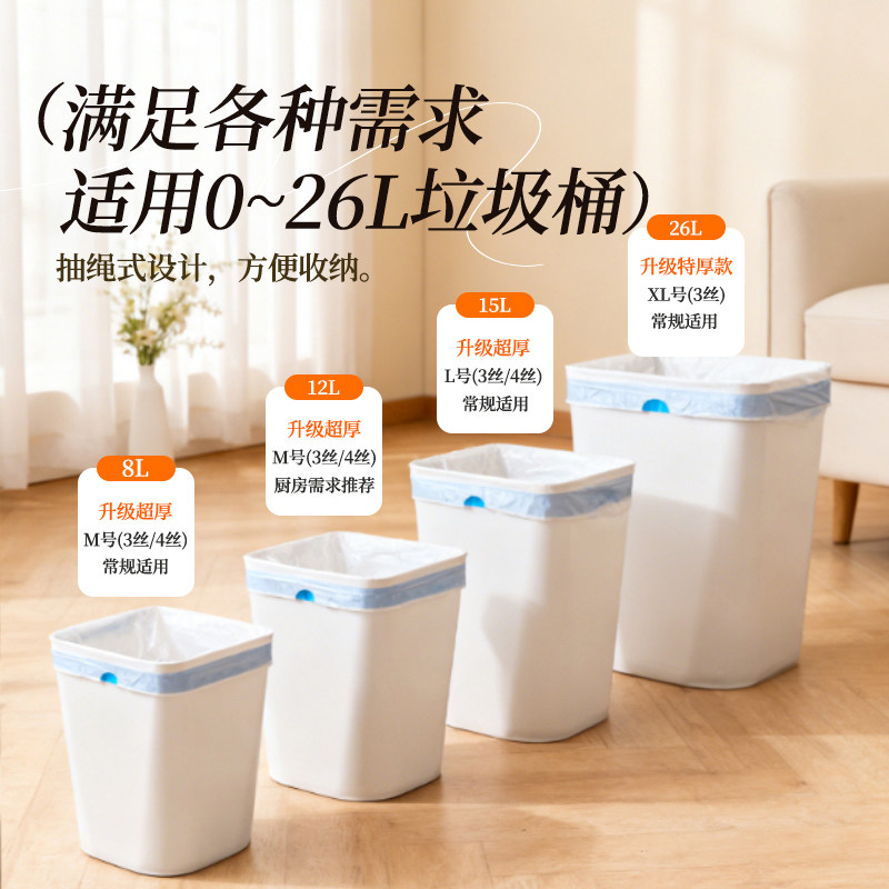 311线报网描述:2025新款 4丝超厚实抽绳免撕垃圾袋家庭专用