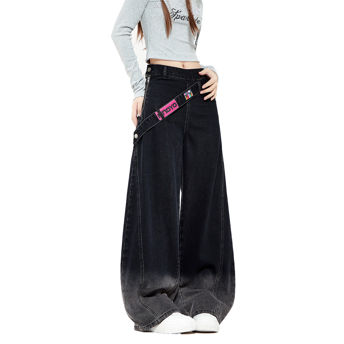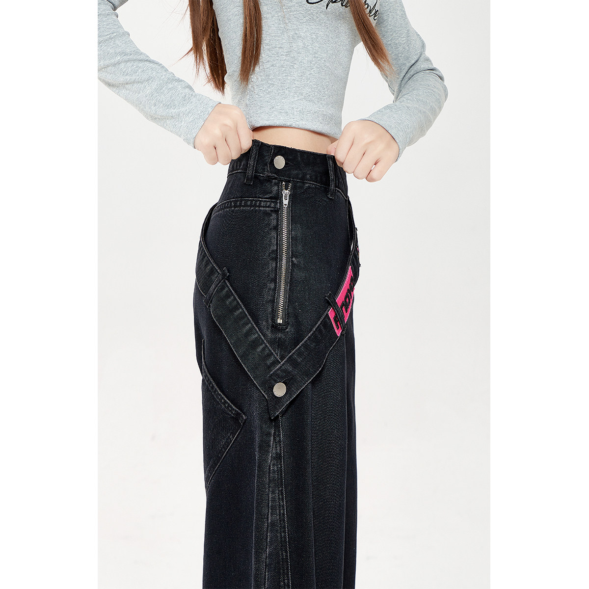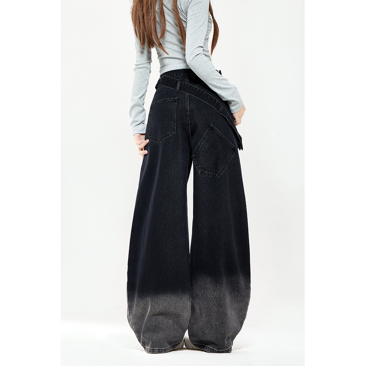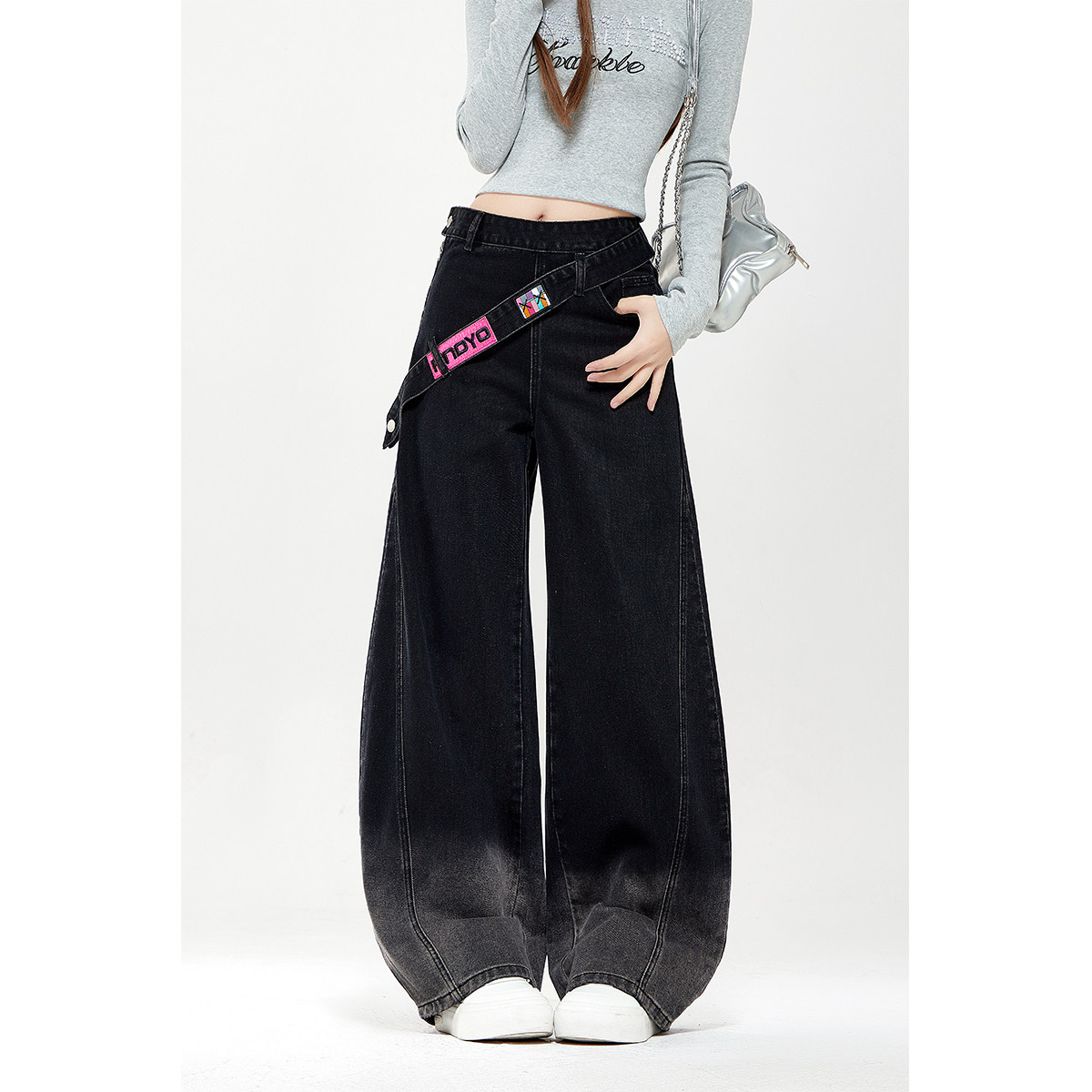 自然涩夏季穿搭侧拉链弯刀牛仔裤女2026春季新款显瘦阔腿长裤子冬