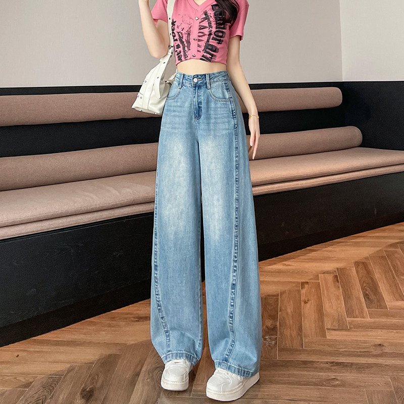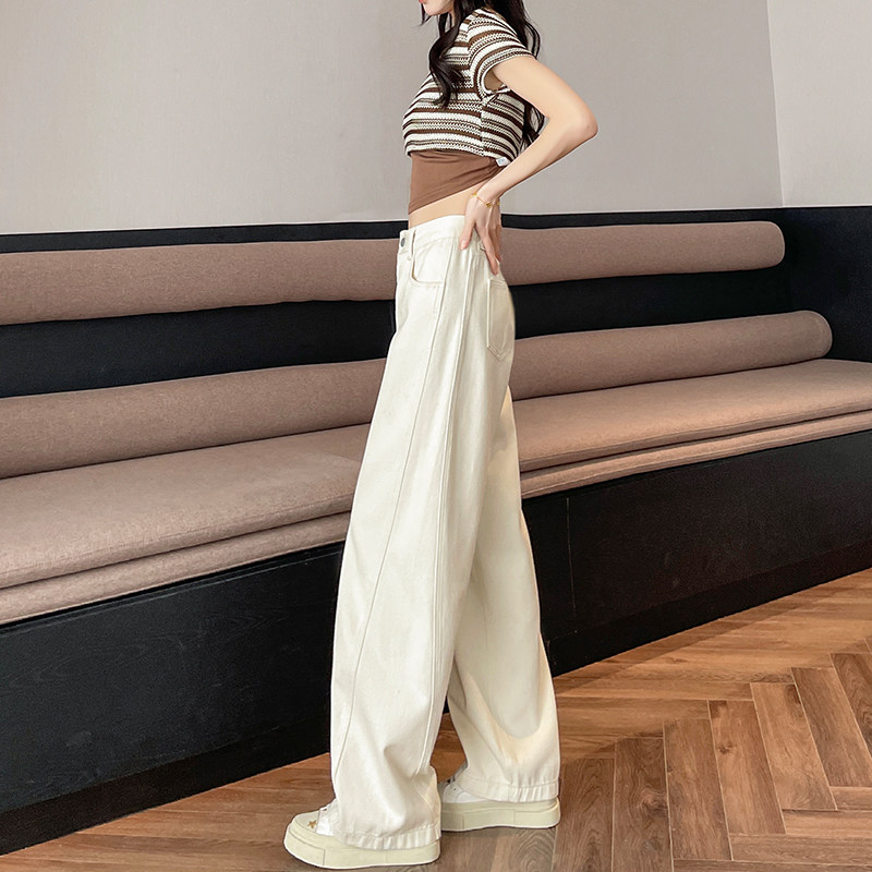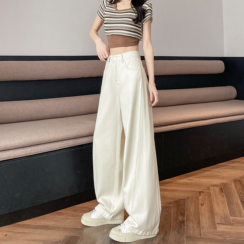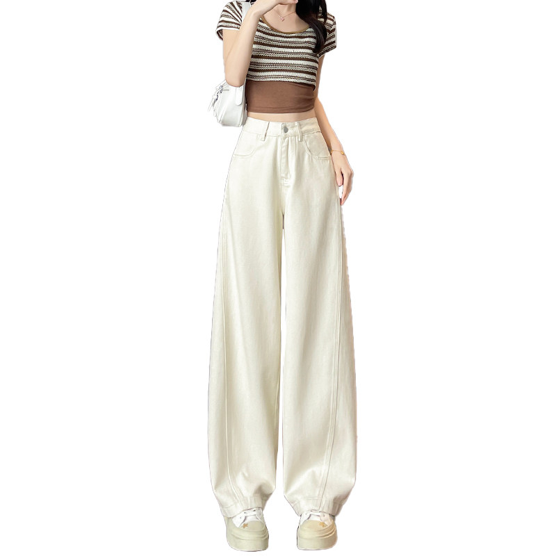 米白色宽松阔腿牛仔裤女春季2026夏季新款大码高腰九分直筒弯刀裤