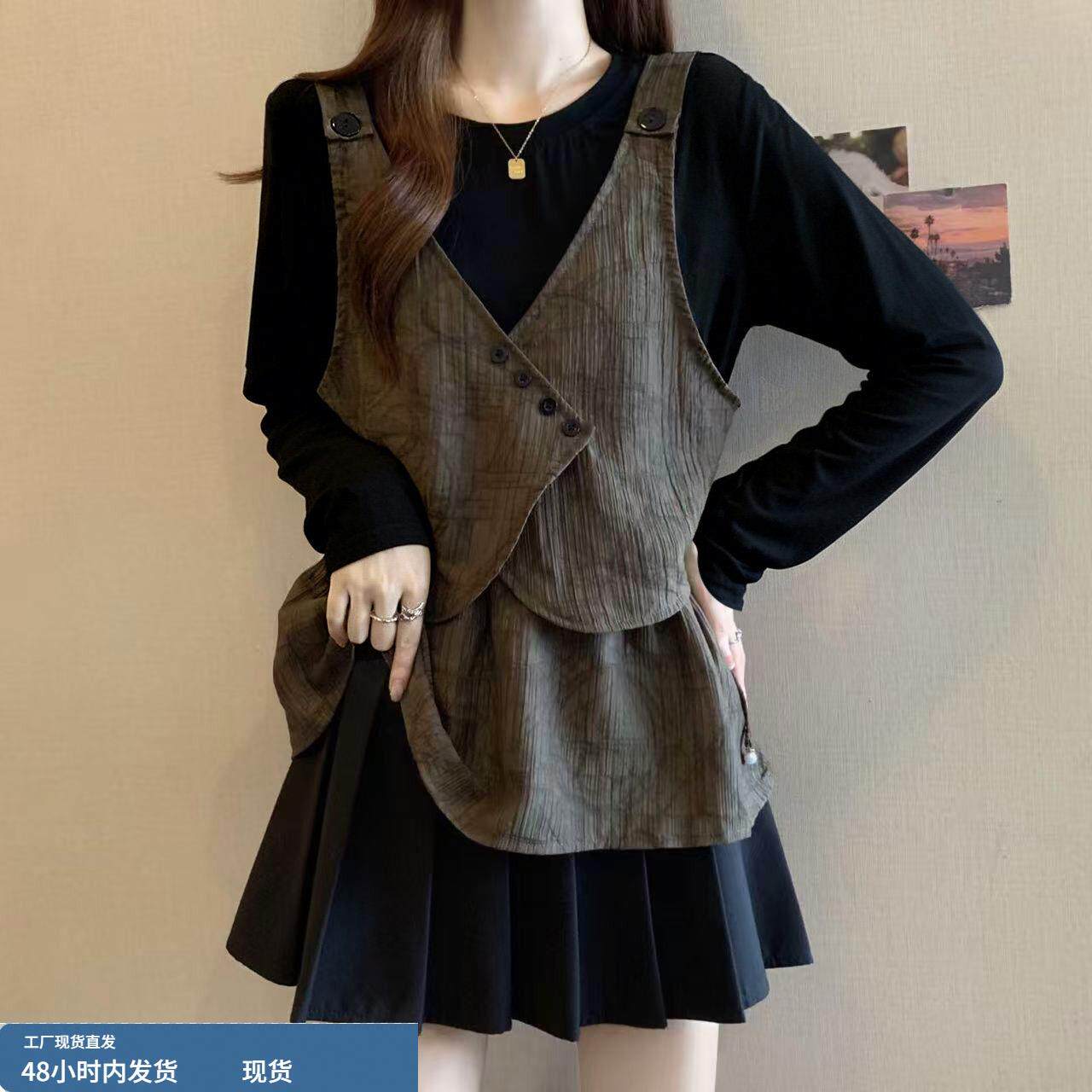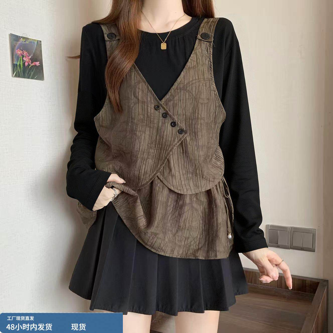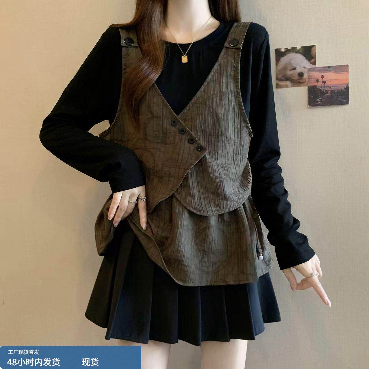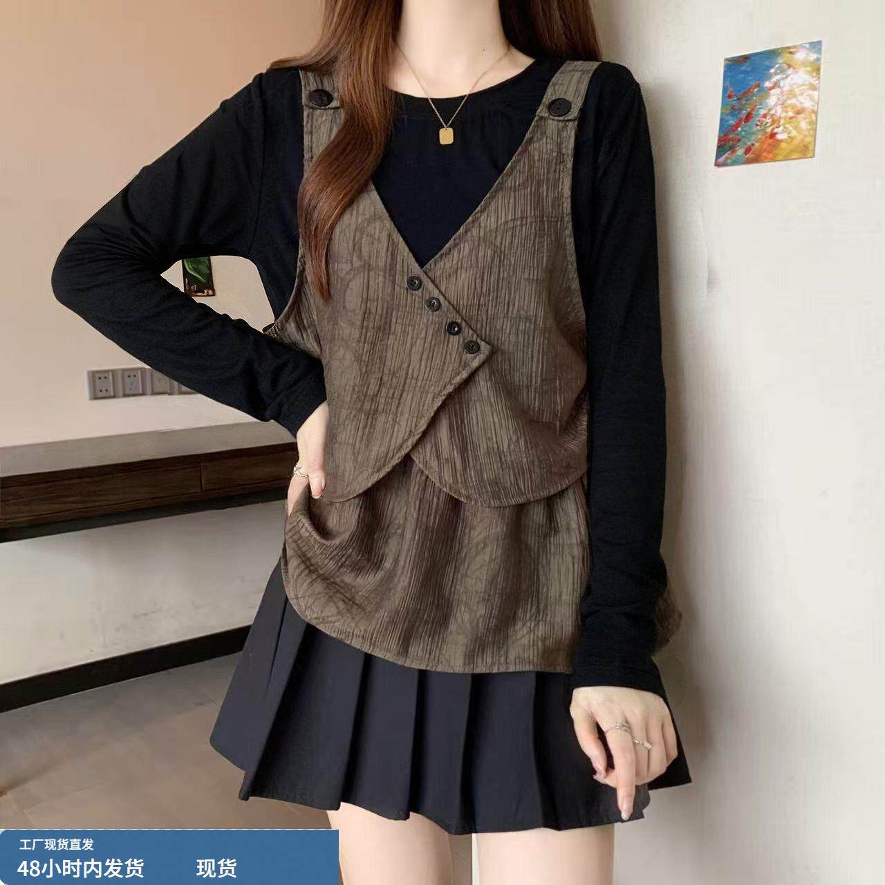 春装女款2026年新款爆款设计感假两件正肩t恤显瘦巨好看长袖上衣