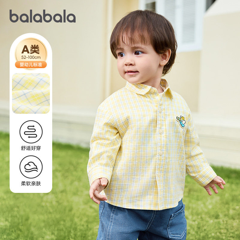 巴拉巴拉婴儿衬衫女童宝宝格子衬衣儿童休闲外套2026春装新款童装