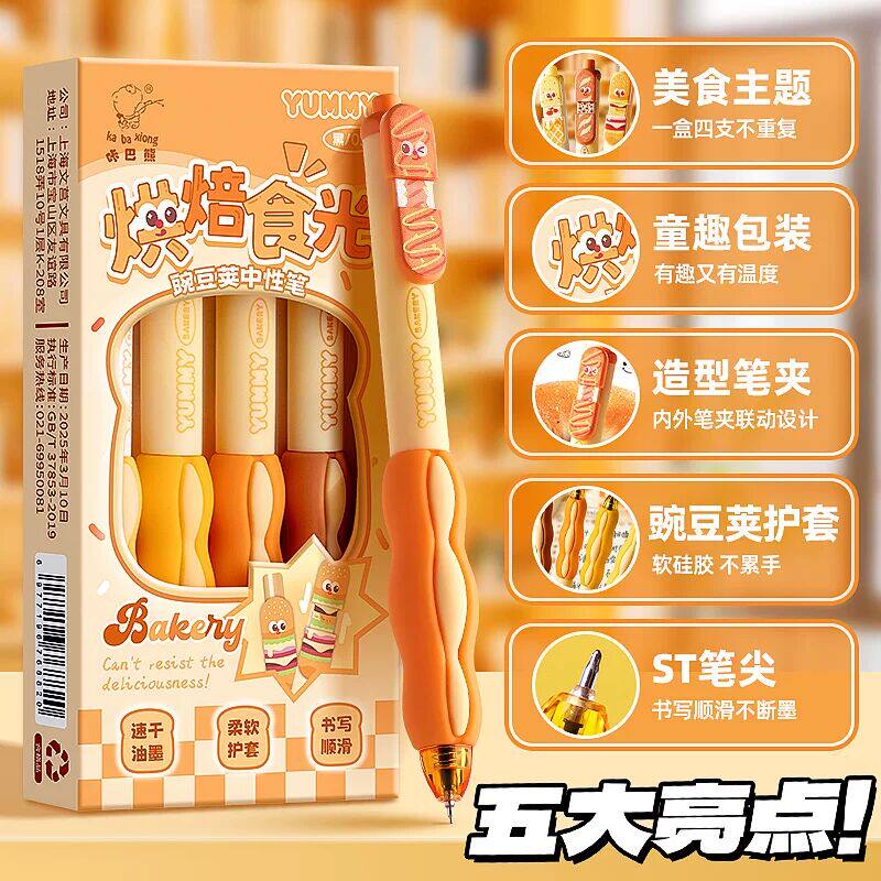 晨光同款咔巴熊软握护套按动中性笔高颜值ins风女生款黑色笔小学
