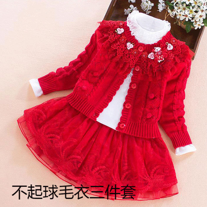 童装2女童套装裙4秋冬装5宝宝毛衣3儿童裙子6洋气7岁女孩三件套裙