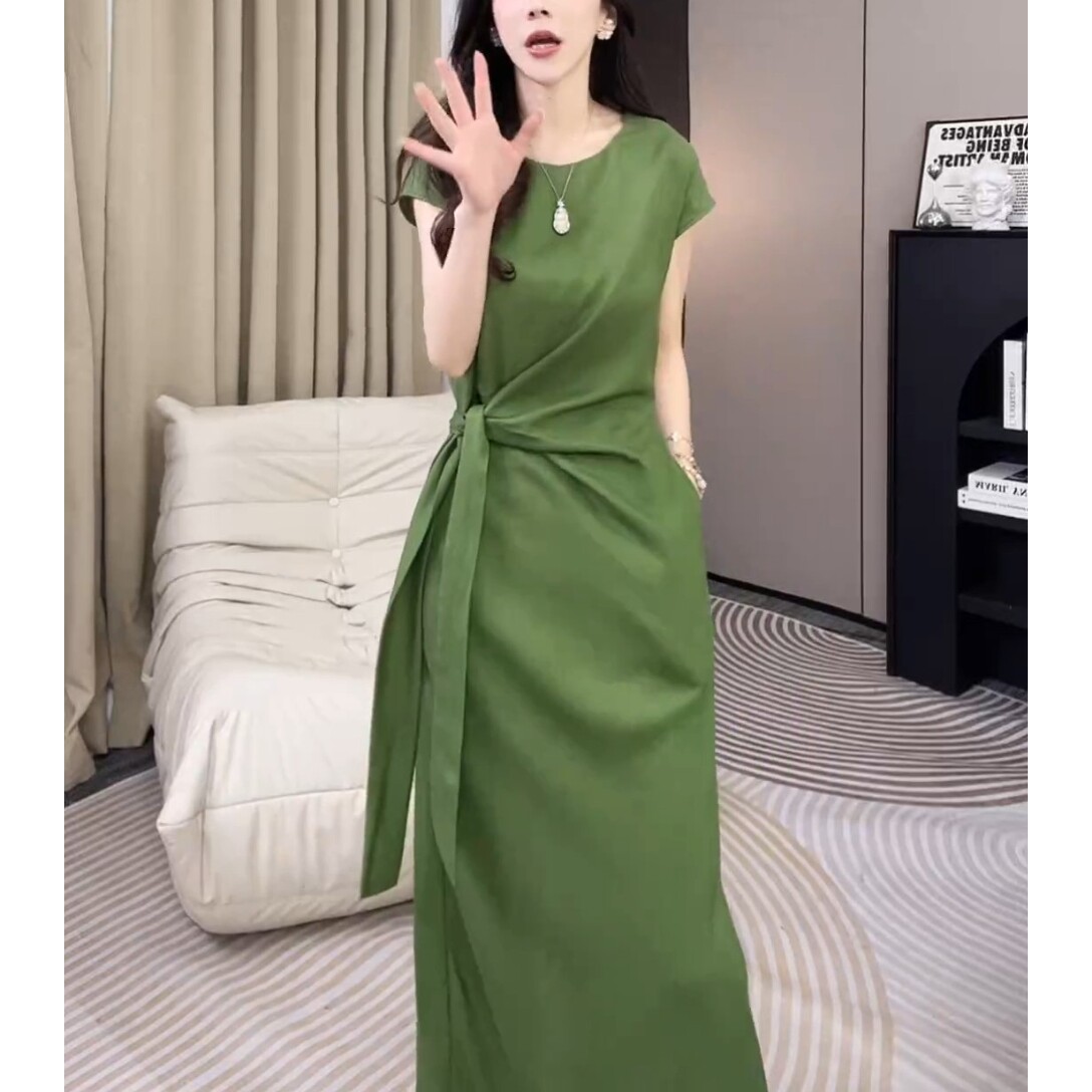 2026年夏季新款气质法式圆领裙子女大码时尚无袖中长款显瘦连衣裙