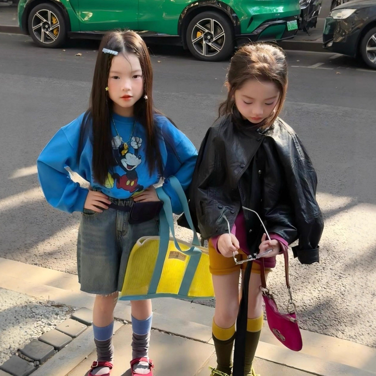 女童春装外套2026新款儿童短款机车服夹克皮衣韩系春秋款牛仔中裤