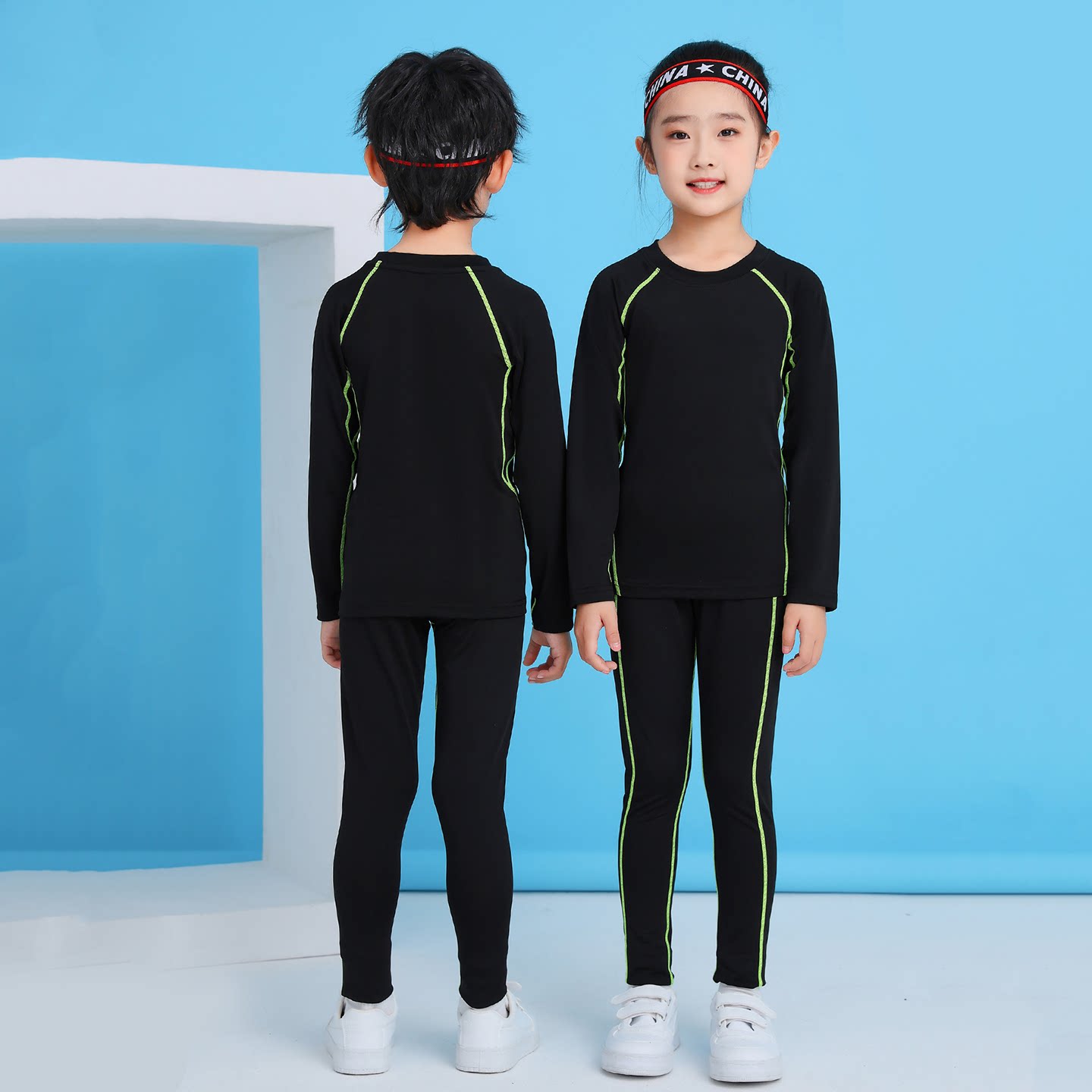 男女童运动紧身衣套装男童紧身跑步篮球健身服打底两件套长袖训练