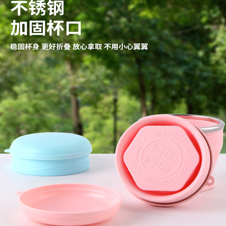 德国折叠杯旅行洗漱耐高温口袋便携式带盖水杯食品级硅胶刷牙杯子