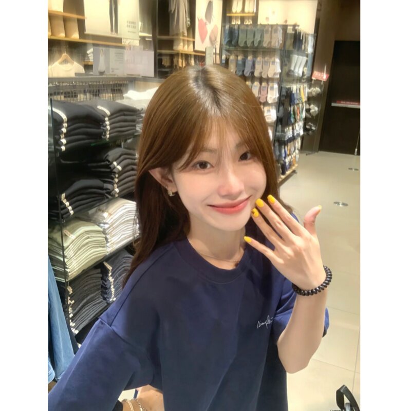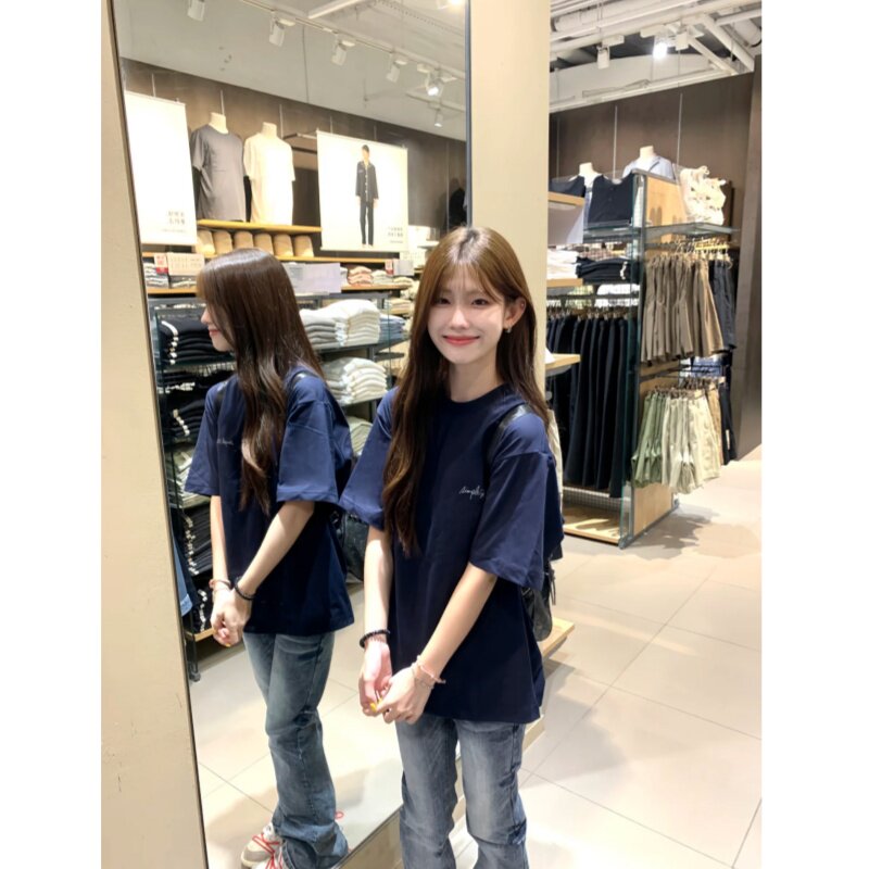 短袖t恤女士藏蓝色2026新款纯棉宽松半袖夏季美式小众不撞款上衣