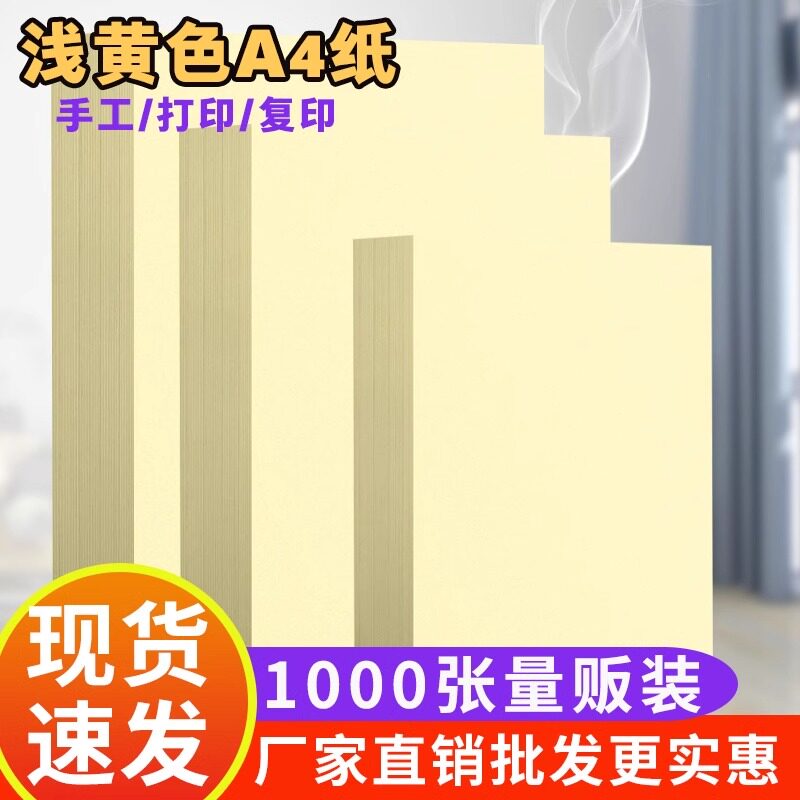 浅黄色A4纸淡黄色打印纸70g复印纸A5黄色纸80克A3批发办公用品彩色纸处方纸 a4纸500张一包打印机专用