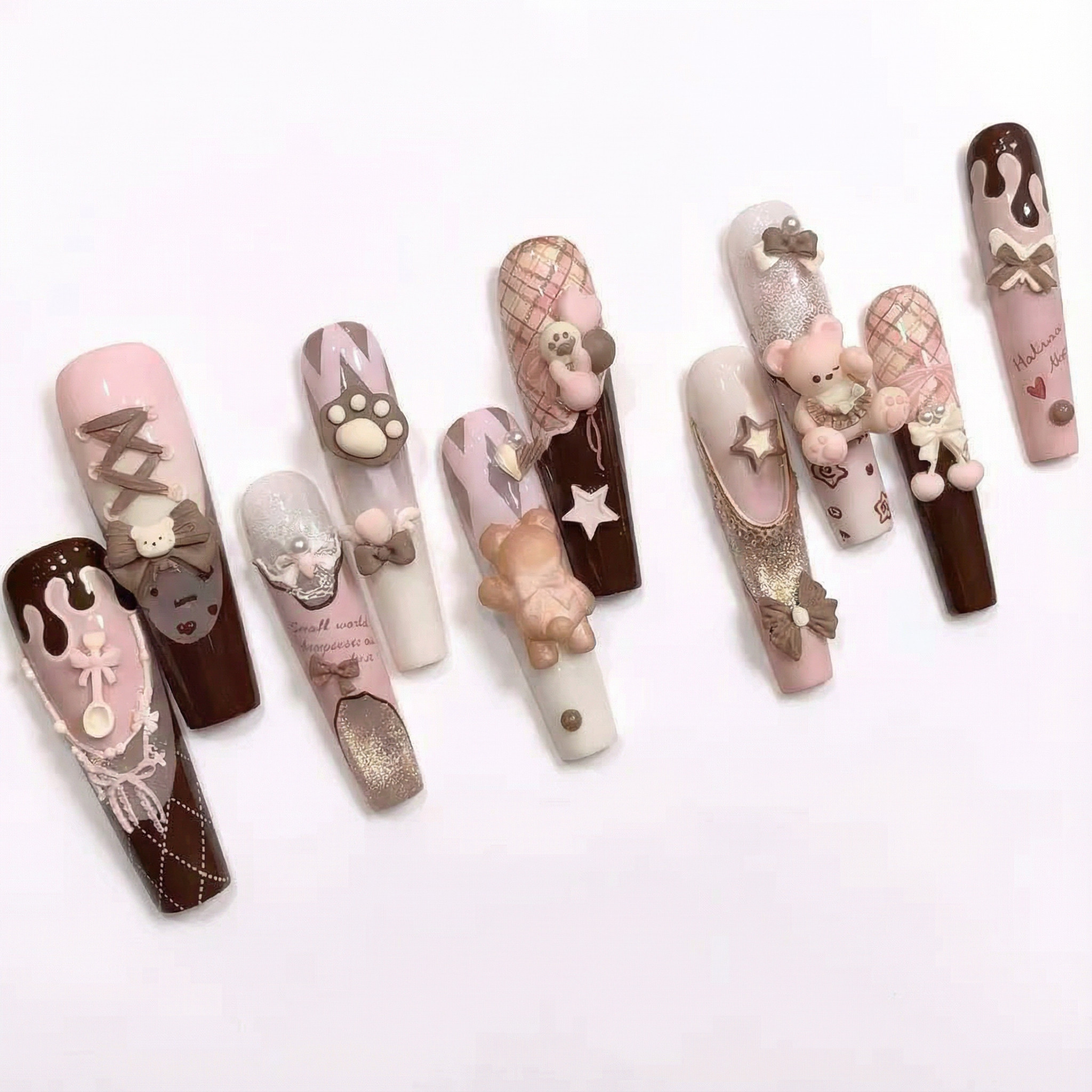 雾屿晨祷甜美可爱小熊穿戴甲纯手工少女心立体美甲贴片可拆卸534