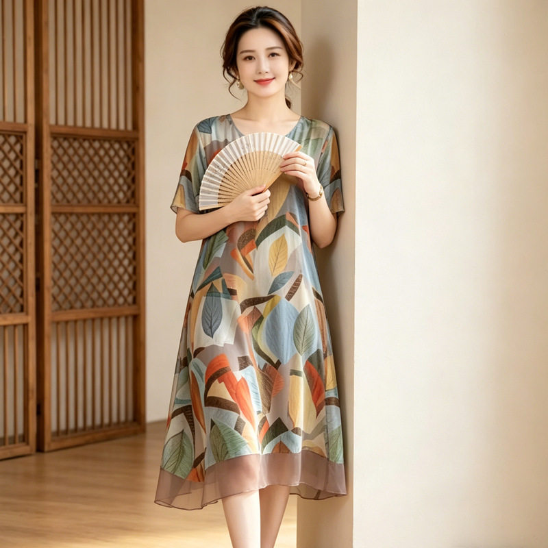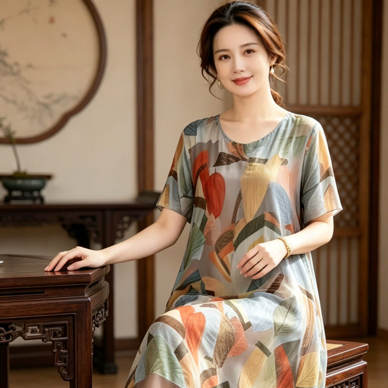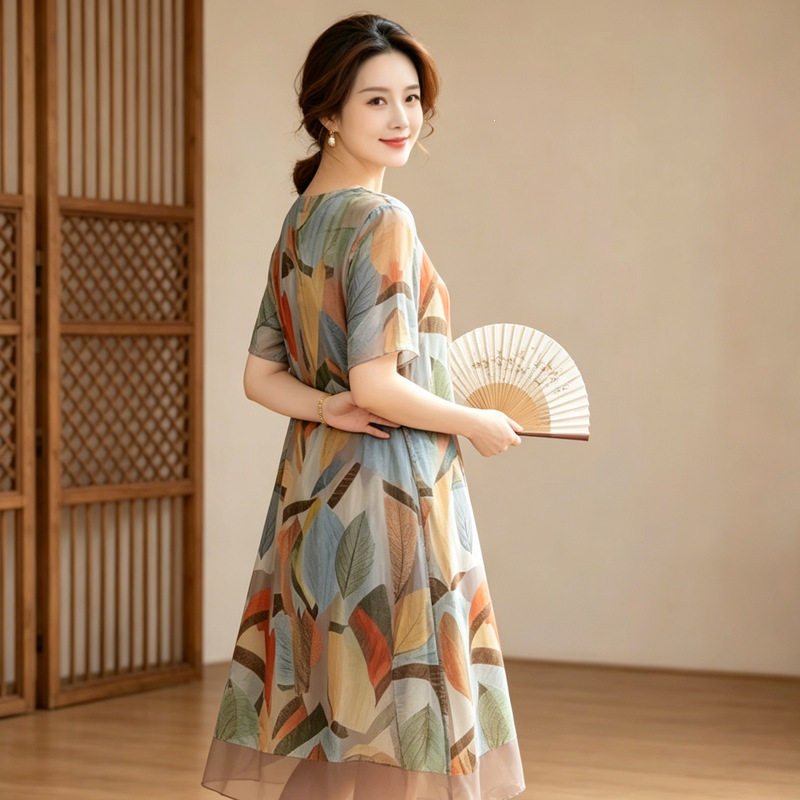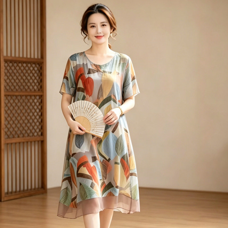 中老年胖mm夏装加肥加大码女装200斤海边度假沙滩长裙雪纺连衣裙
