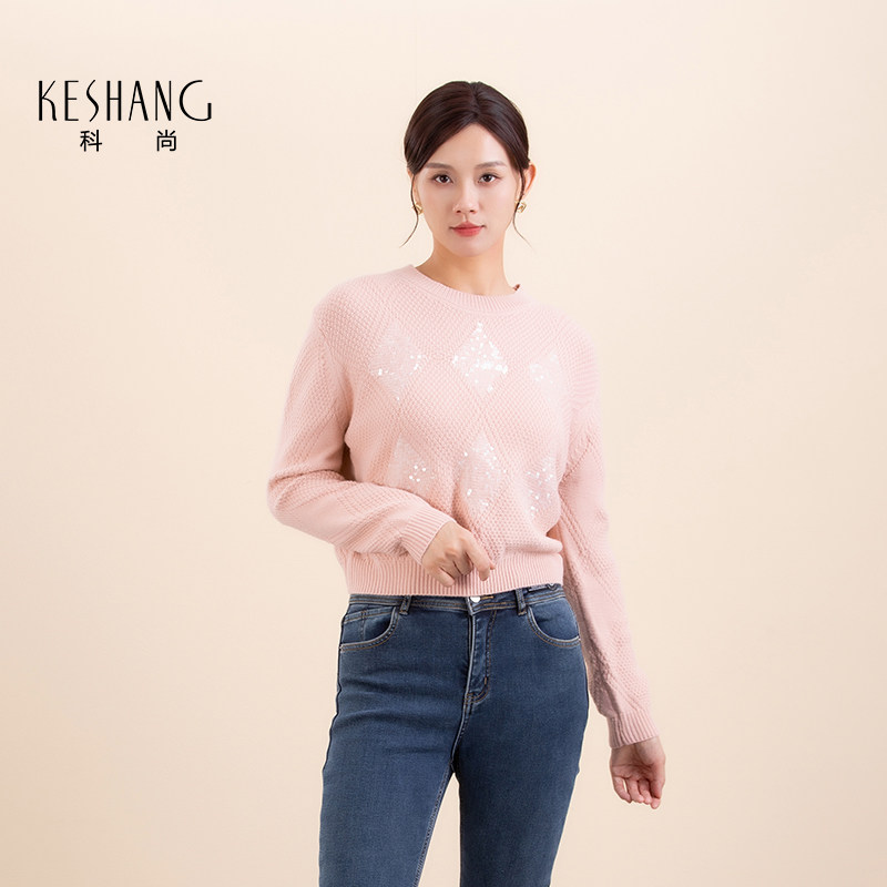 科尚2025冬装新款毛衣女时尚亮片洋气宽松外穿套头显瘦针织衫上衣
