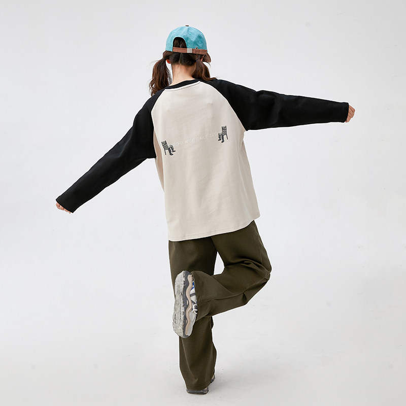 诺诺公主S1N初中生2026春季趣味字母印花长袖T恤美式时髦洋气上衣