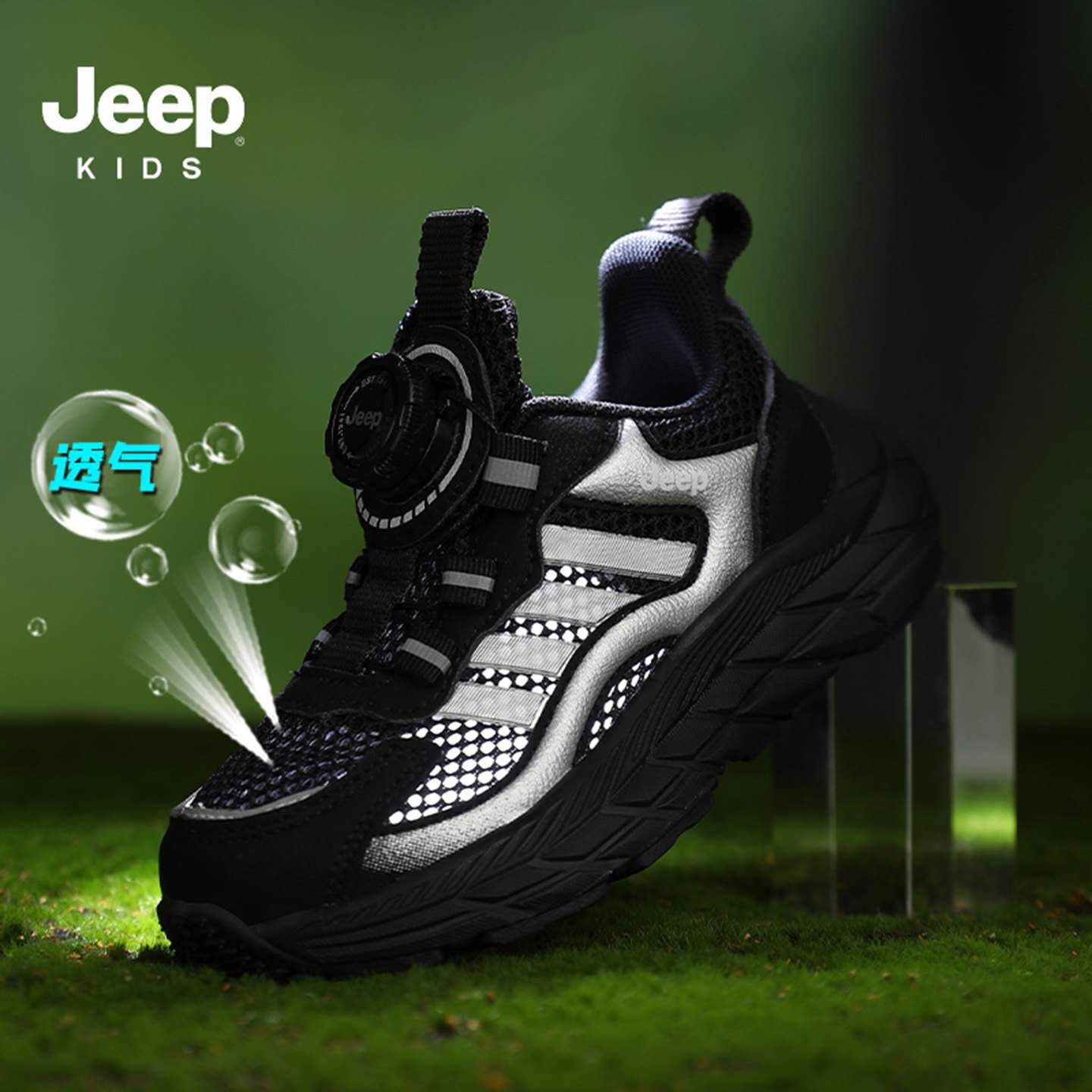 jeep儿童鞋子2026夏季比赛研学小学生黑色运动鞋单网女童跑步鞋男