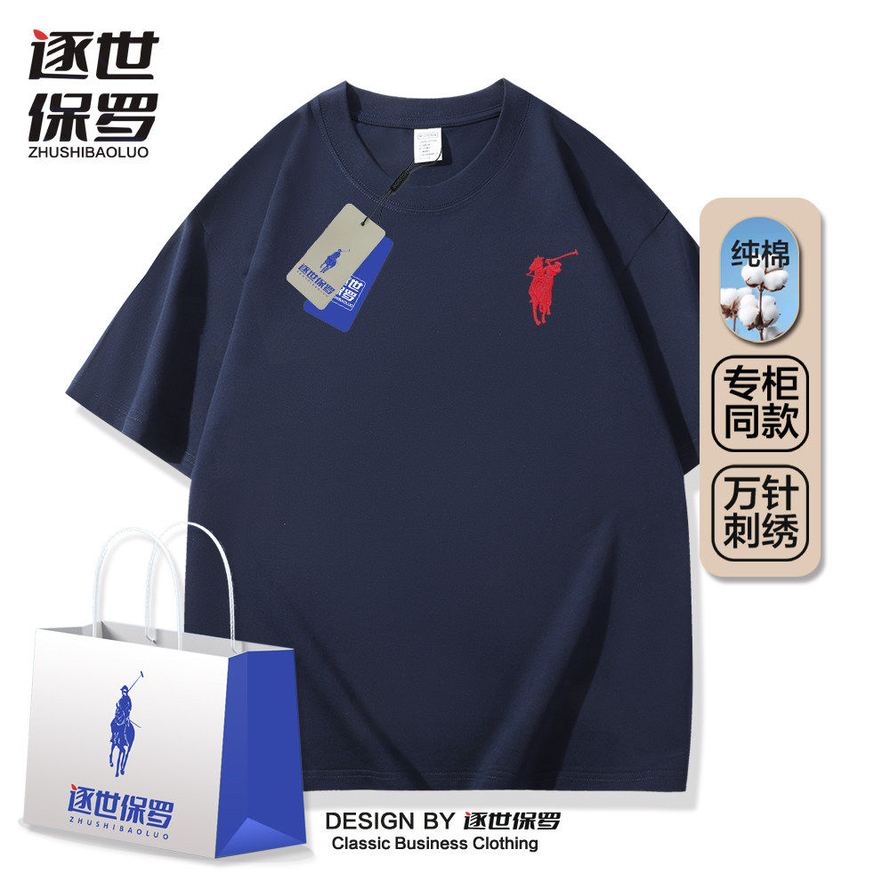 逐世保罗刺绣战马-2026新款纯棉短袖夏季圆领T恤男女百搭情侣上衣