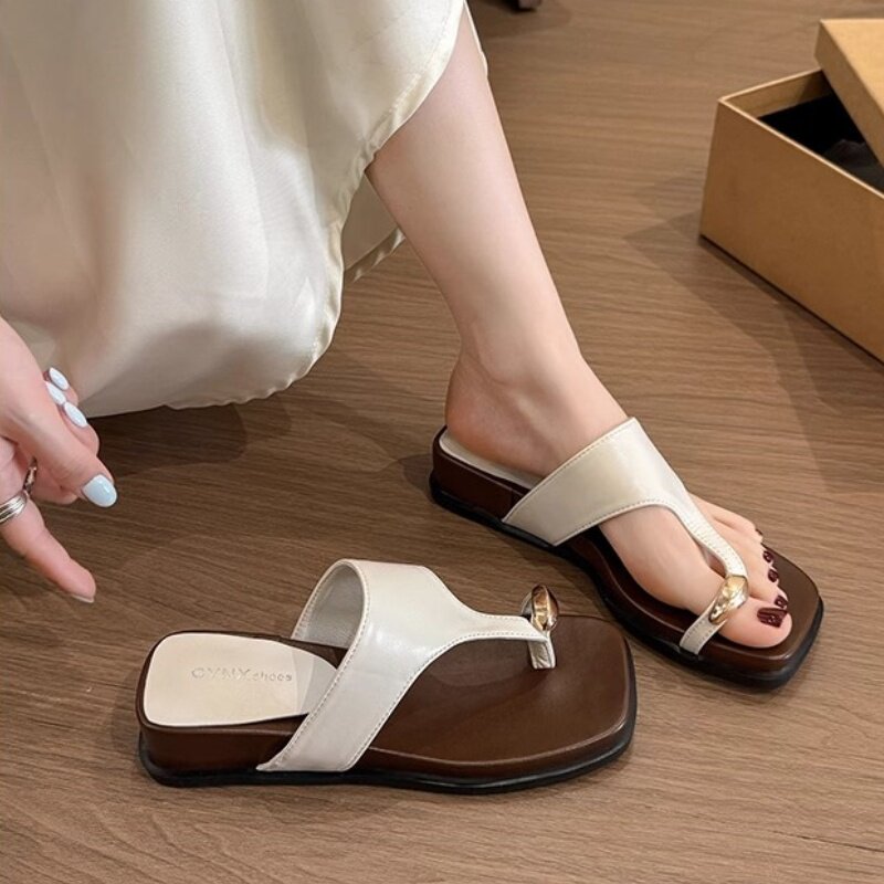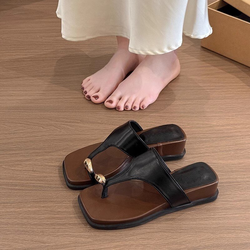 厚底增高坡跟套趾凉拖鞋女夏季外穿2025新款配裙子沙滩凉鞋人字拖