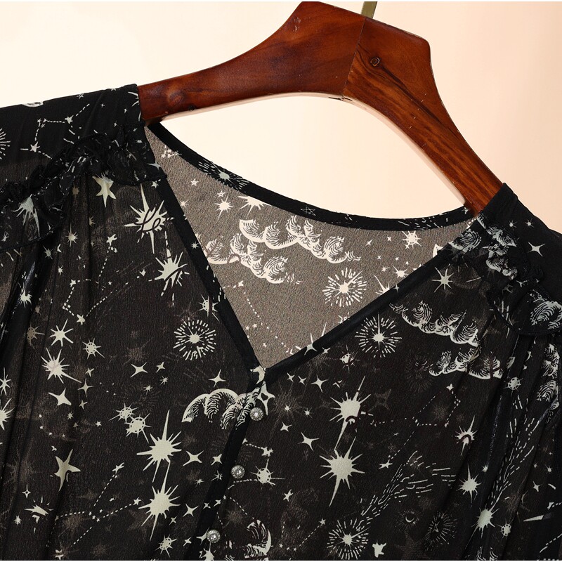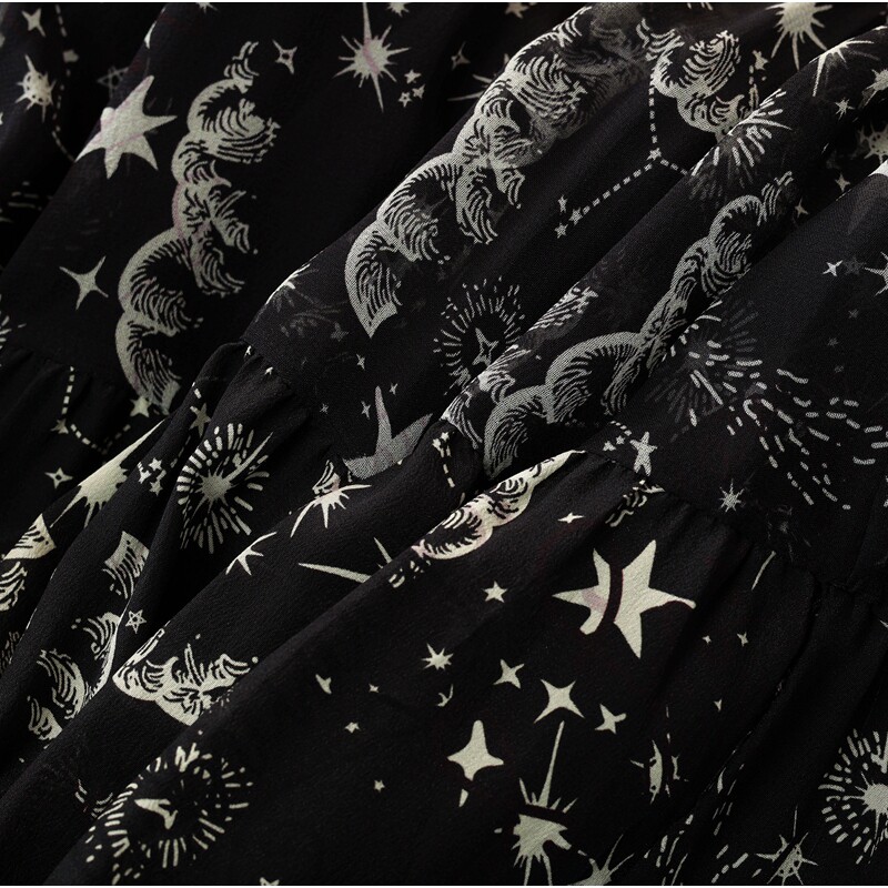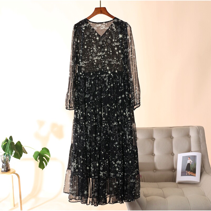 100~桑蚕丝赫本风轻奢优雅气质V领长袖碎花连衣裙~26春新款女装